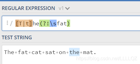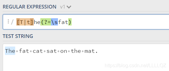 注意这里是要找出The 和 the 后面紧跟着 (空格)fat的字符串,但是正先行断言只是一个判断条件,他不会作为匹配被检索,所以最后匹配到的只是The