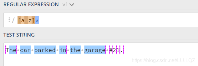 一般来说 ^ 表示一个字符串的开头,但它用在一个方括号的开头的时候,它表示这个字符集是否定的。 例如,表达式 [^c]ar 匹配一个后面跟着ar的除了c的任意字符。