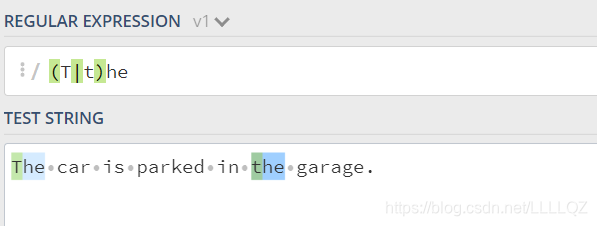竖线允许一个表达式包含多个不同的分支。所有分支用 | 分隔。和在字符层面上运作的字符集 [abc] 不同,分支在表达式层面上运作。例如 (T|t)he|car 匹配 (T|t)he 或 car。