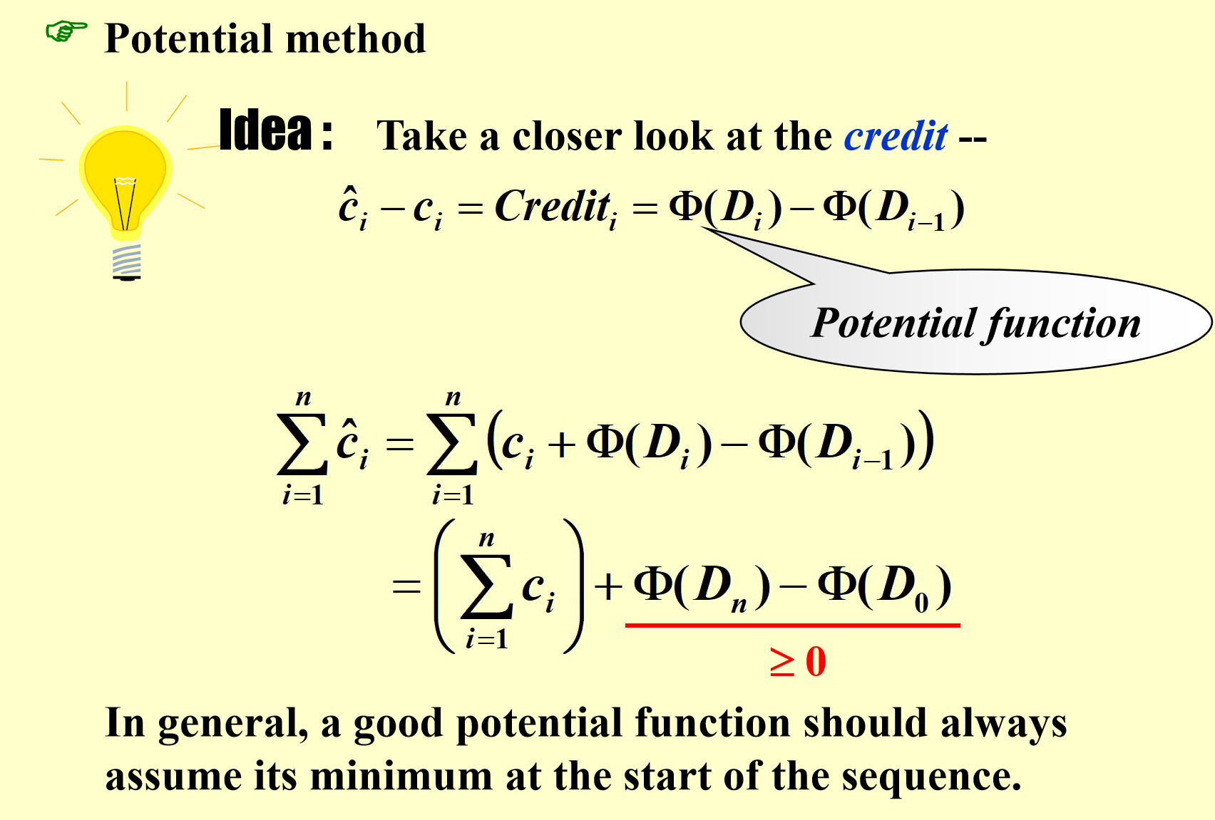 用 Potential method 可以计算 accounting method 的 credit,继而算 amortized time