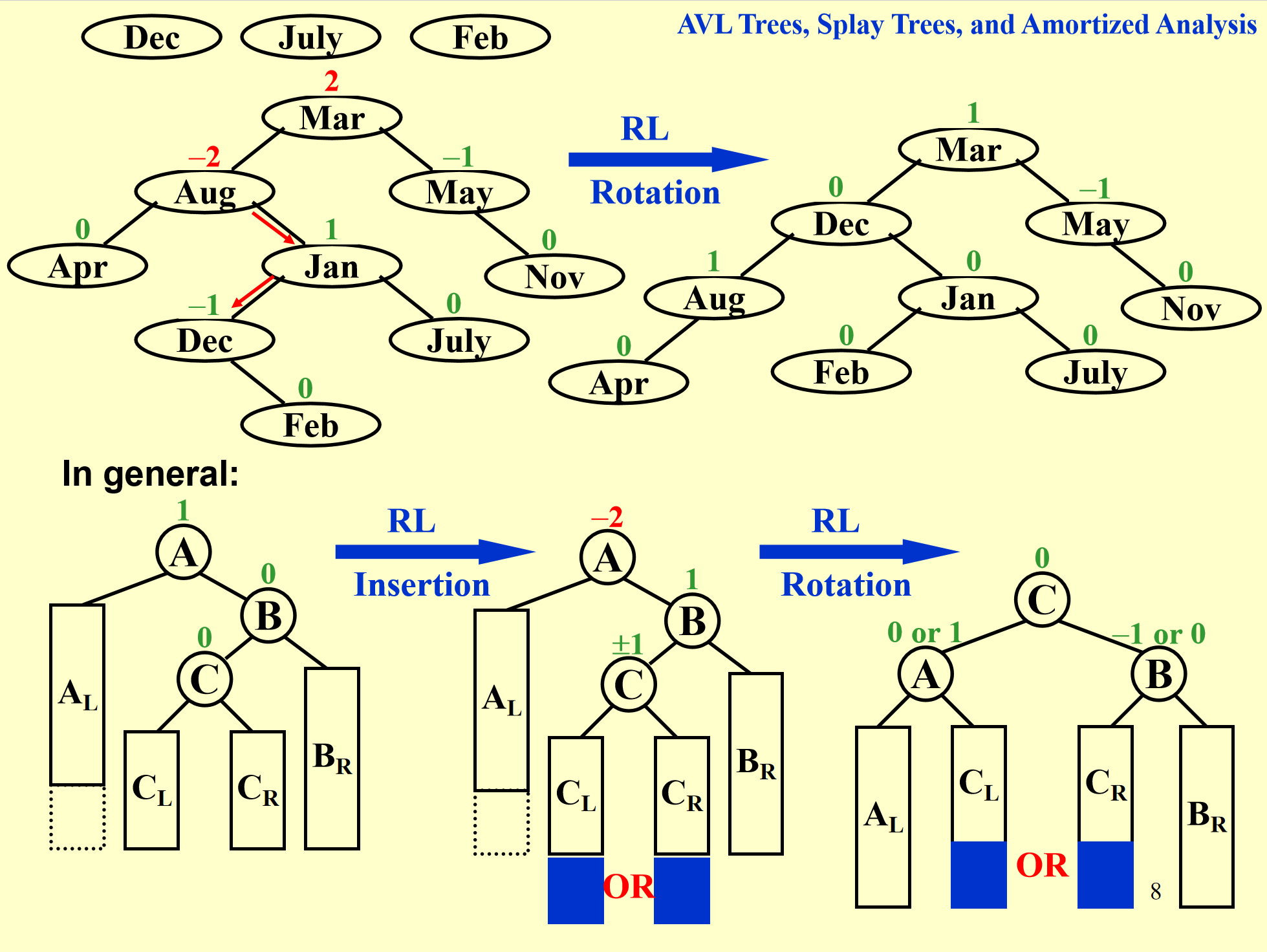 一句话,每次插入 / 删除,带来 BF 的变化,就要看需不需要旋转,如果需要的话,看从 trouble maker 到 trouble finder 这条路上的情况,决定怎样旋转