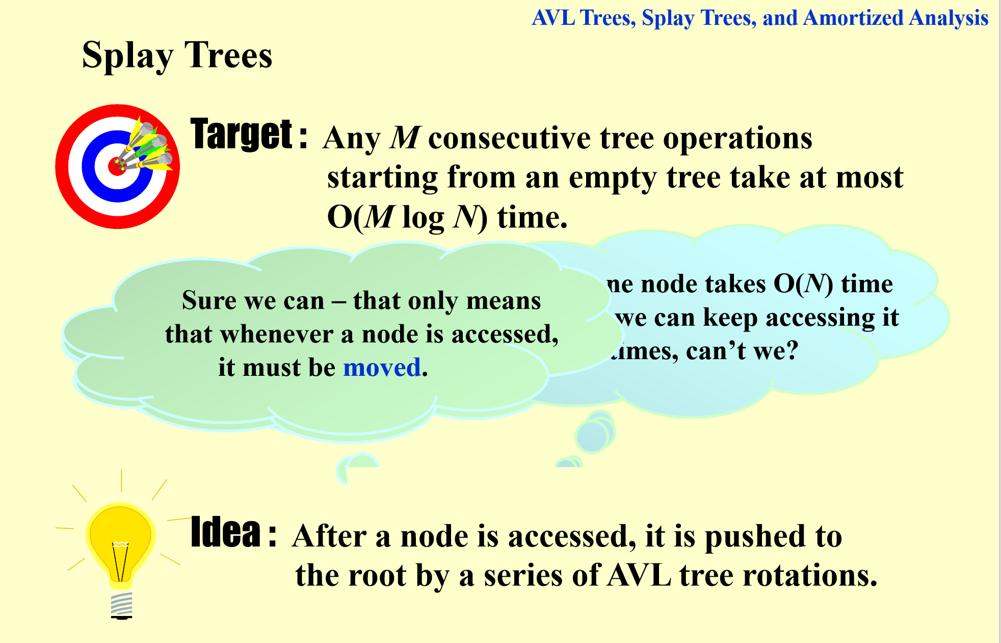 📖 直观理解: Splay Tree 就像一个“会自己记忆使用习惯”的 BST。 你常访问哪个节点,它就会自动靠近根,让以后访问更快。