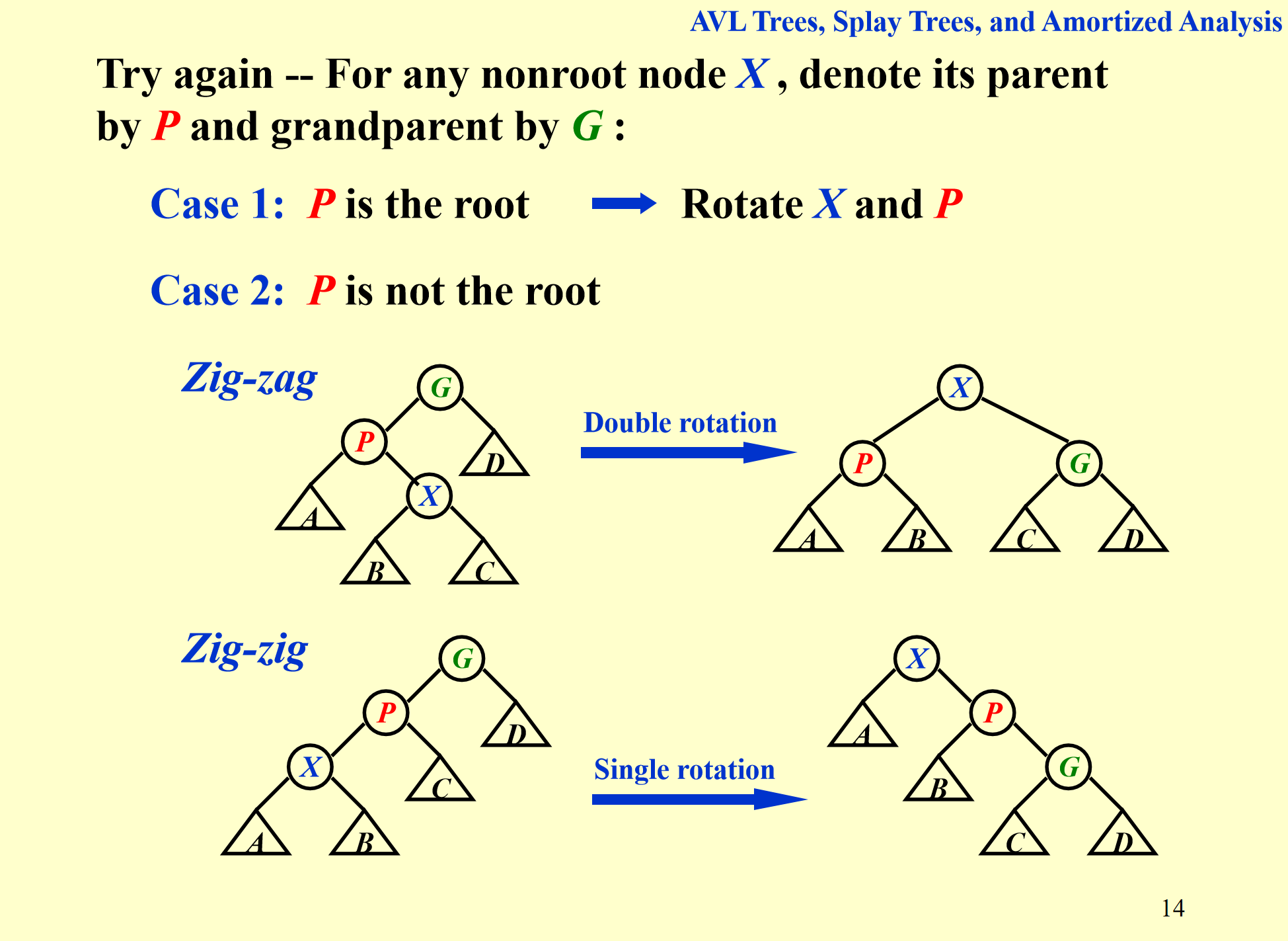 通过几次旋转(zig-zig / zig-zag)把被查询的 X 旋转到根节点