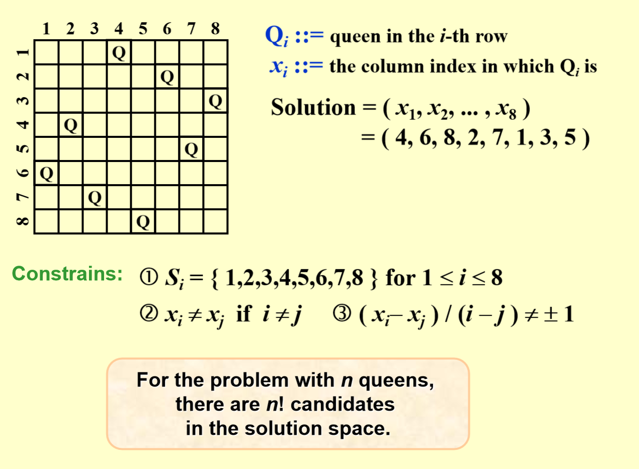 答案序列:第 i 个元素代表在第 i 行,其值代表在第几列