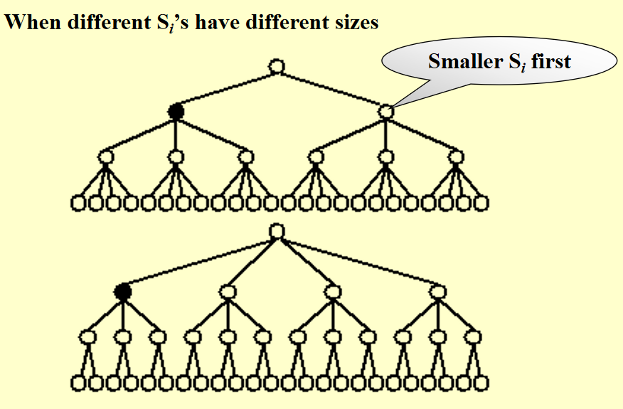 上面比较好,剪枝过程中如果在上面的节点剪掉的话可以排除好多。