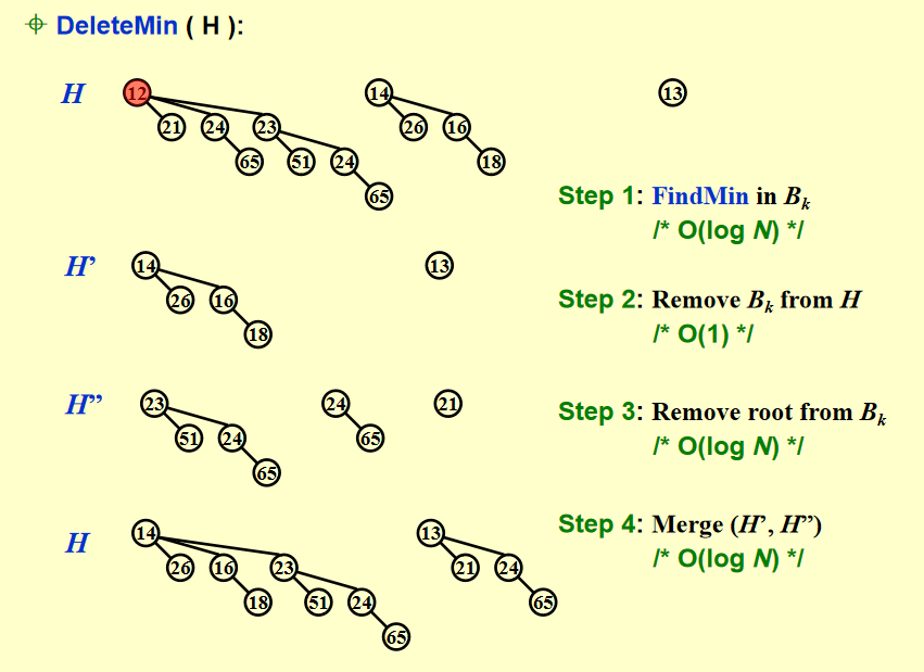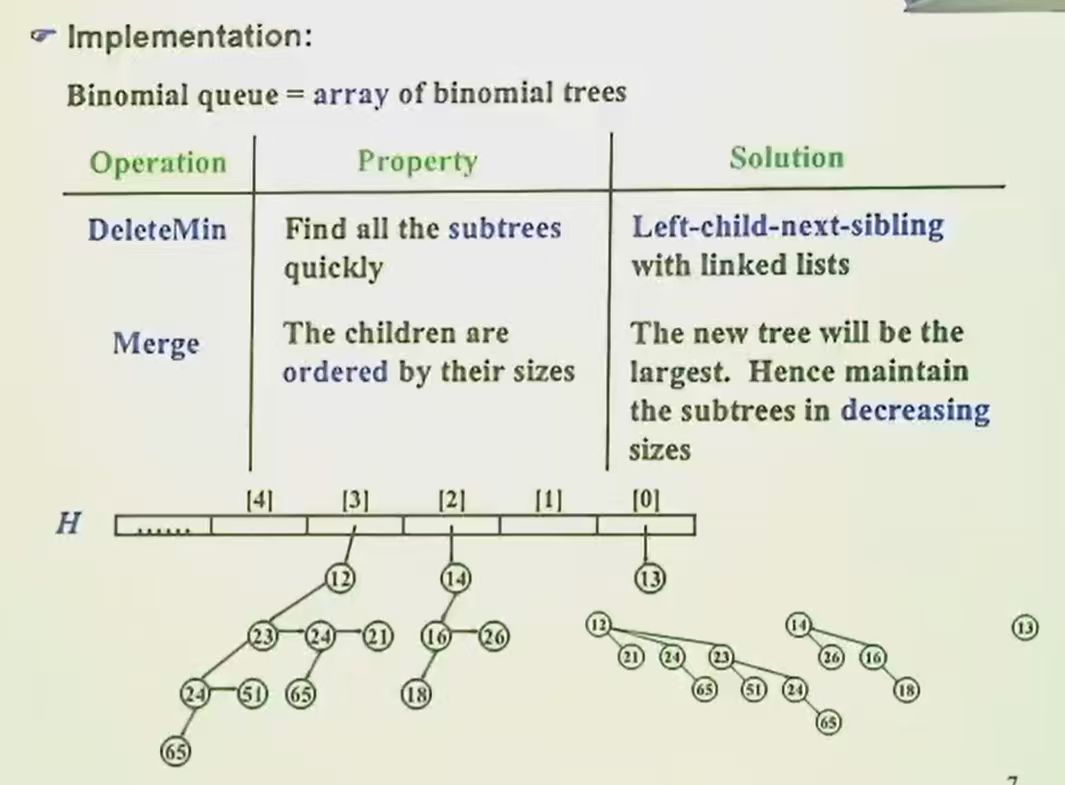 本质是一群堆,即森林,每一个堆都是一个 binominal tree 二项树