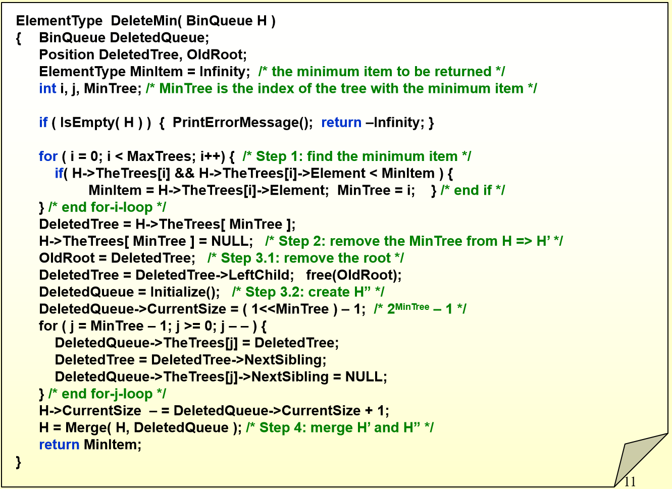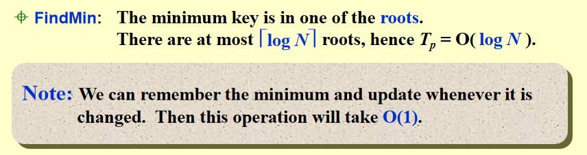 方案1:遍历所有二项树的根,对 N 个元素的二项队列,里面有 \(O(\log N)\) 个二项树,所以 时间复杂度 \(O(\log N)\),但是简单的堆最小值就是根 时间复杂度 \(O(!)\)