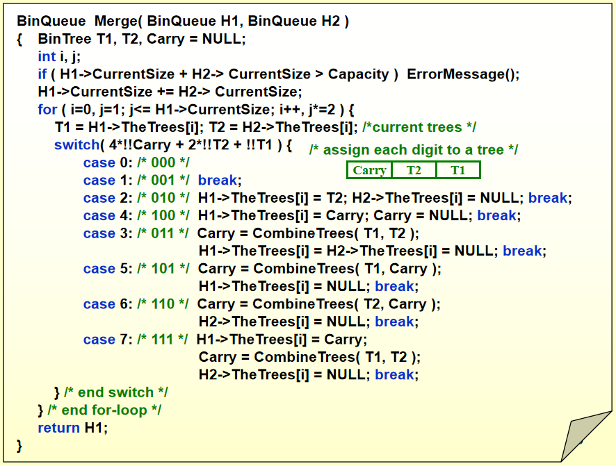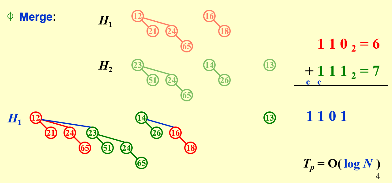 当两个都有某一个一样结构的二项树,则合并,因为不能出现结构一样的两个