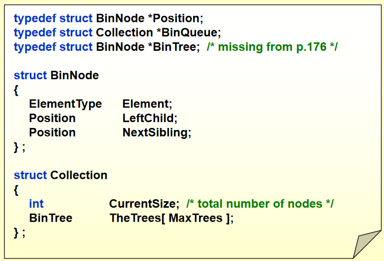 对于二项树:用左儿子右兄弟 left-child-next-sibling 设计结点的结构体