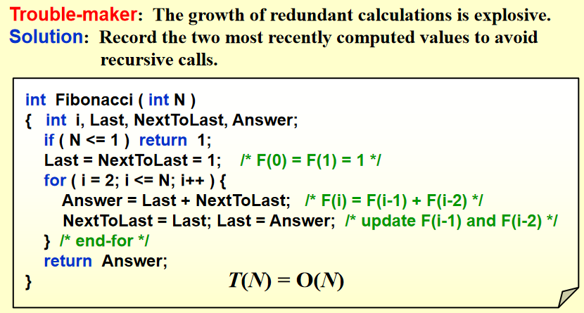 - 只存前两个数:因为只需要这两个数,一个循环就解决了,不用递归
