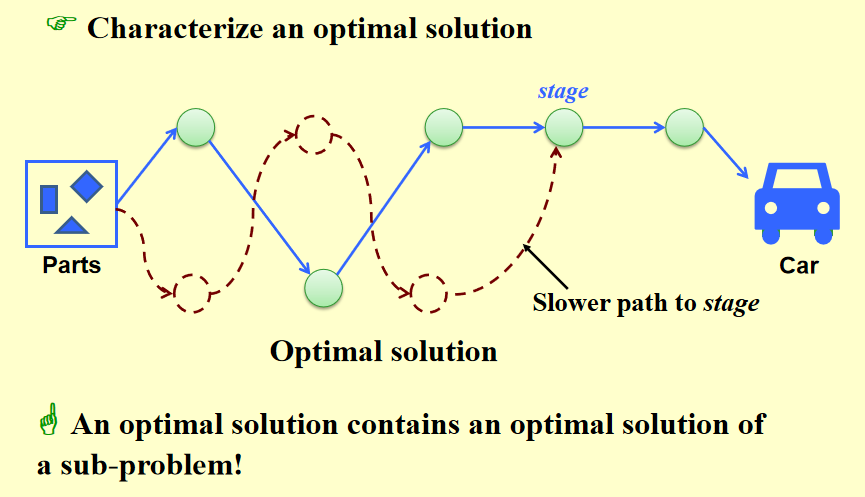 - 最优子结构:假设原问题依赖子问题次优解,那么检查,如果替换其为子问题的最优解,如果此时能替换,且替换之后原问题的解不会变得更差,就ok