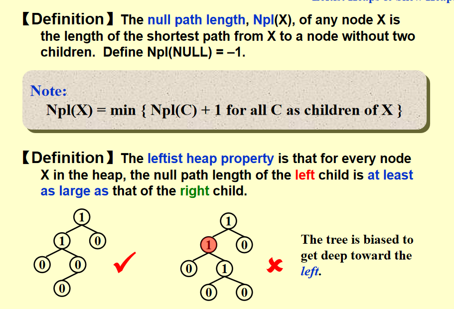 左倾堆的 target:加速堆的合并操作,变成 \(O(\log N)\)。