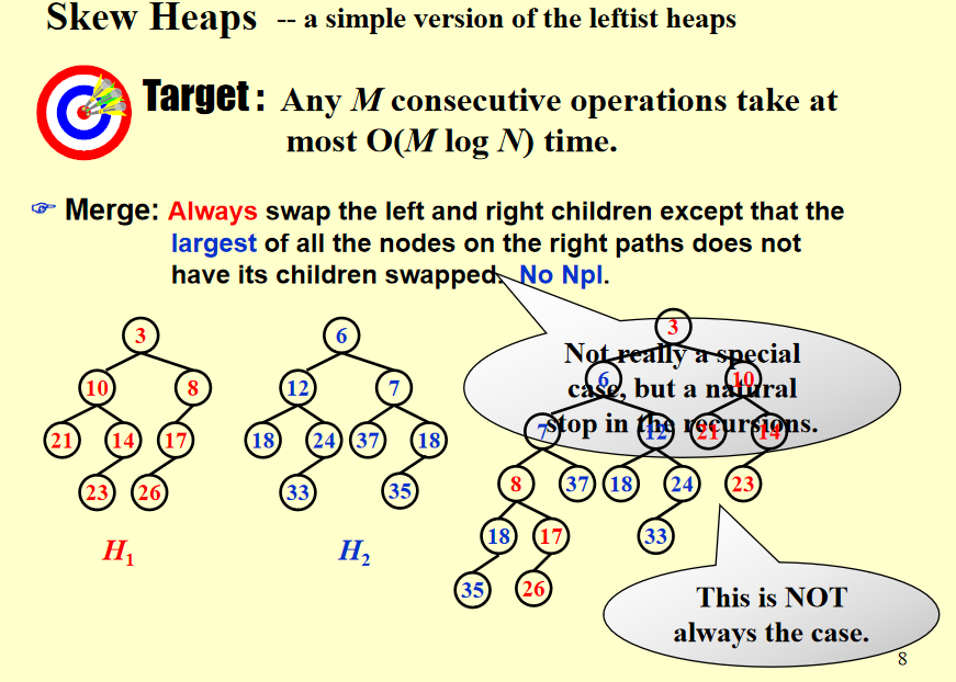 斜堆能保证 M 次操作,时间复杂度是 \(O(M \log N)\)