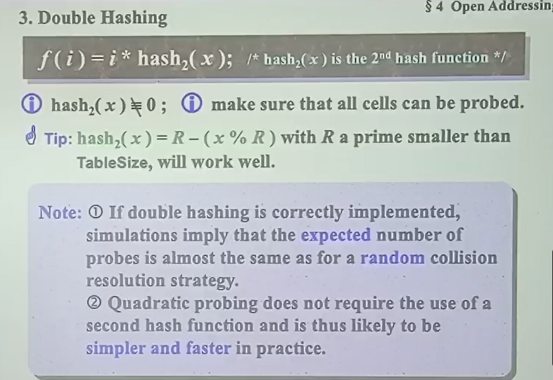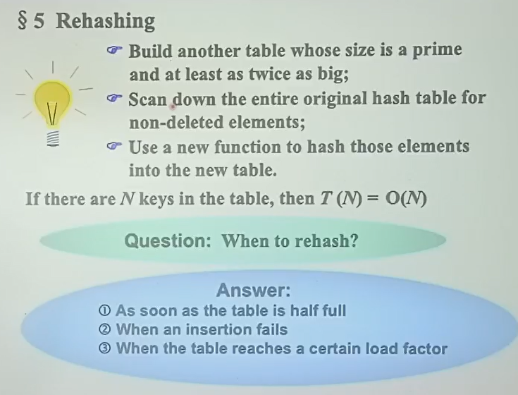 出现问题,重新建哈希表,填入原来元素,用新哈希函数填入其他