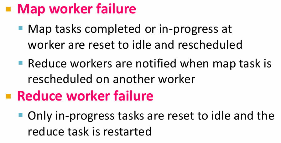 当machine goes down,网络传输慢,可以通过,replication(数据复制)和data locality(数据本地化)来解决。