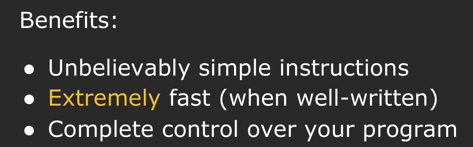 An example of inline assembly in C++ to print "Hello, world!" to the console: