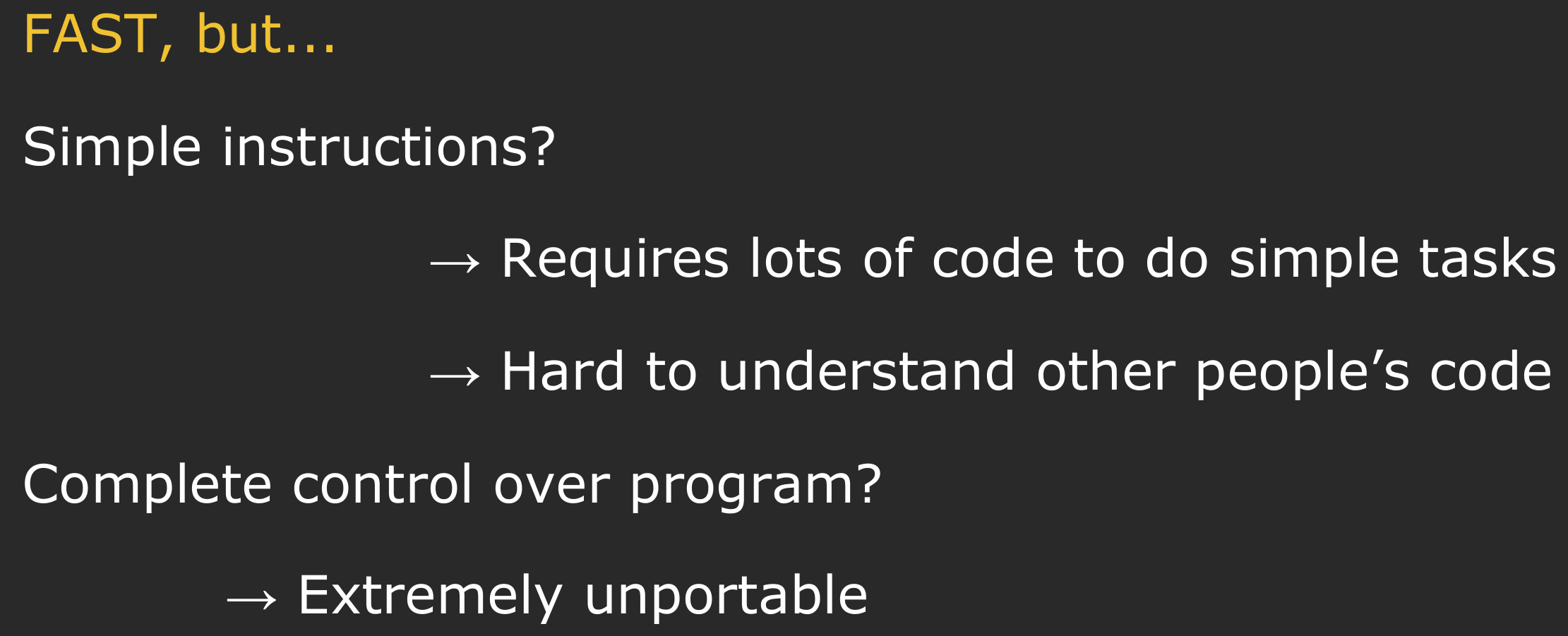 For the reason that people use different assembly syntax, a code work well on others computer may not work on your machine. C++ is Cross-platform.