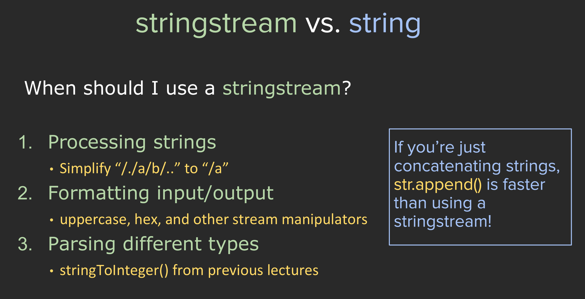 When to use stringstream