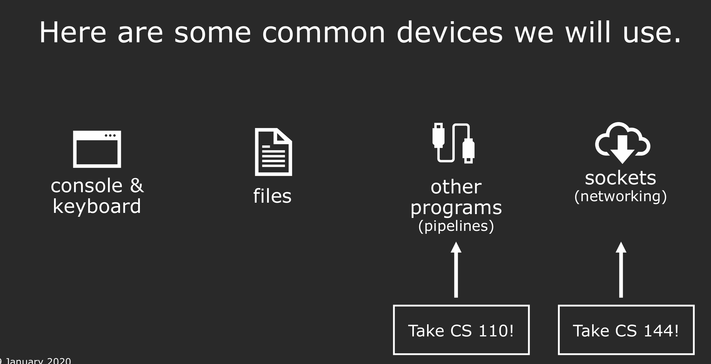 The reason why we use streams is we often want our programs to interact with external devices.