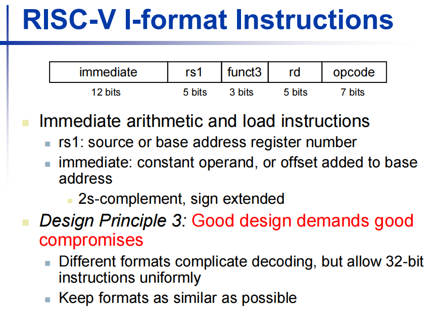 | I-type | imm[11:0] | rs1 | funct3 | rd | opcode | 寄存器 + 立即数(如 addi, lw) | 1个寄存器 + 立即数 | |||||||