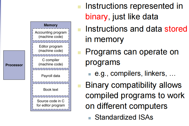 存储程序思想:将程序和数据都存放在内存中,CPU 通过指令来访问和操作这些数据。