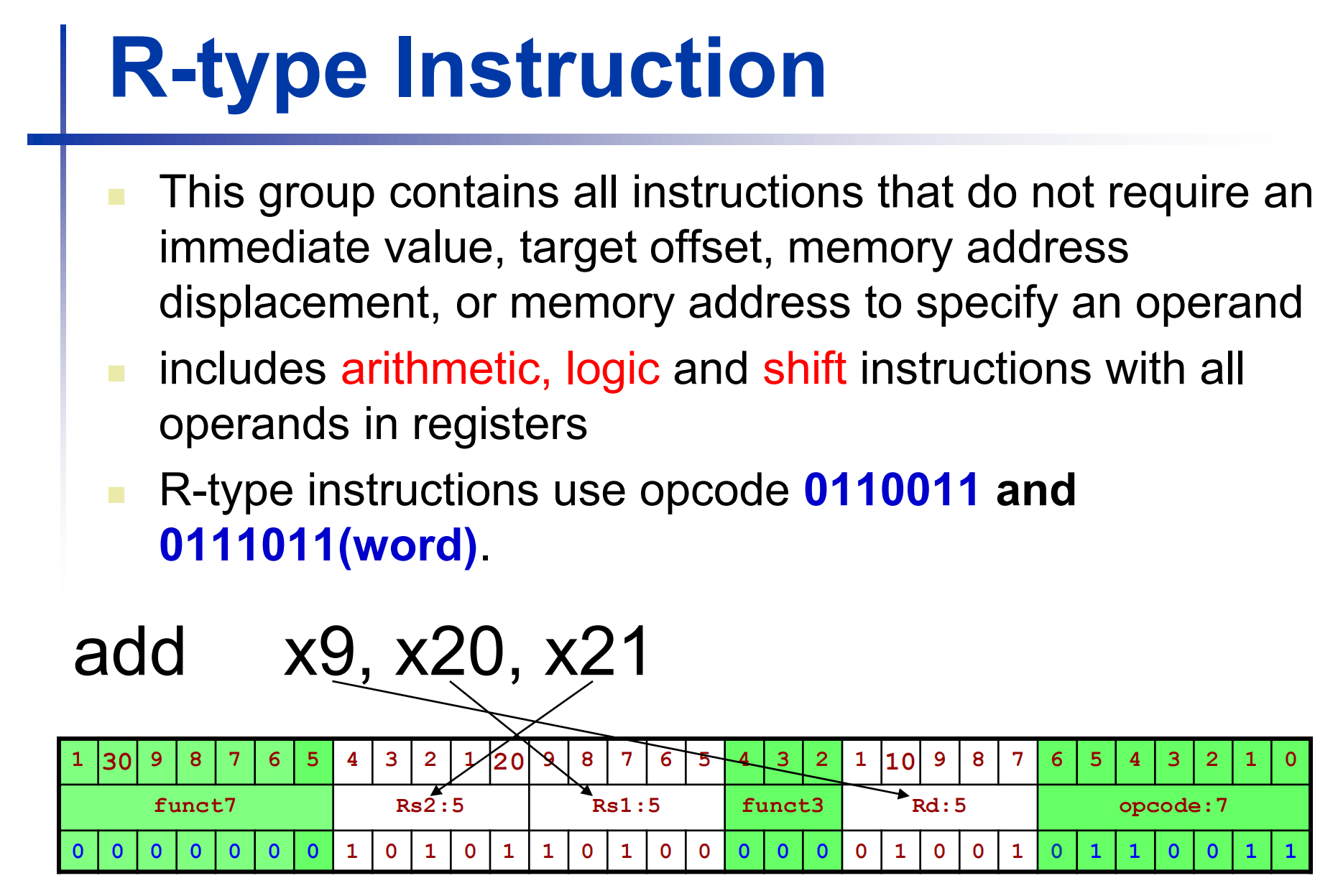 | funct7 | rs2 | rs1 | funct3 | rd | opcode |