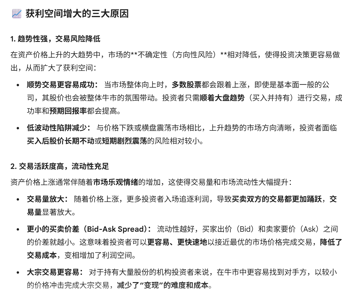 所以当利率下降,机会成本下降,资产价格上升,证券市场的获利空间大