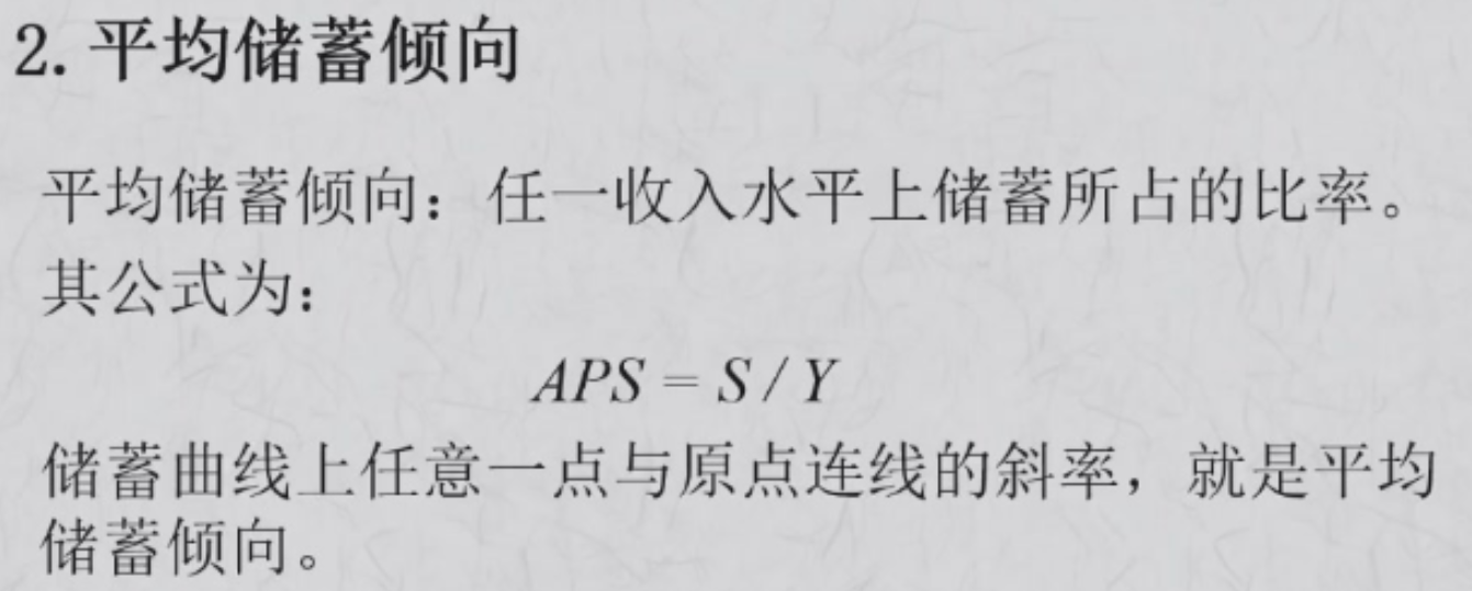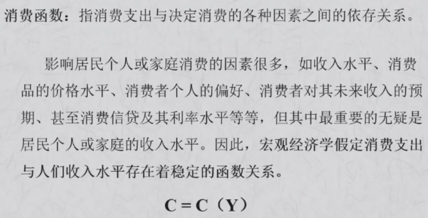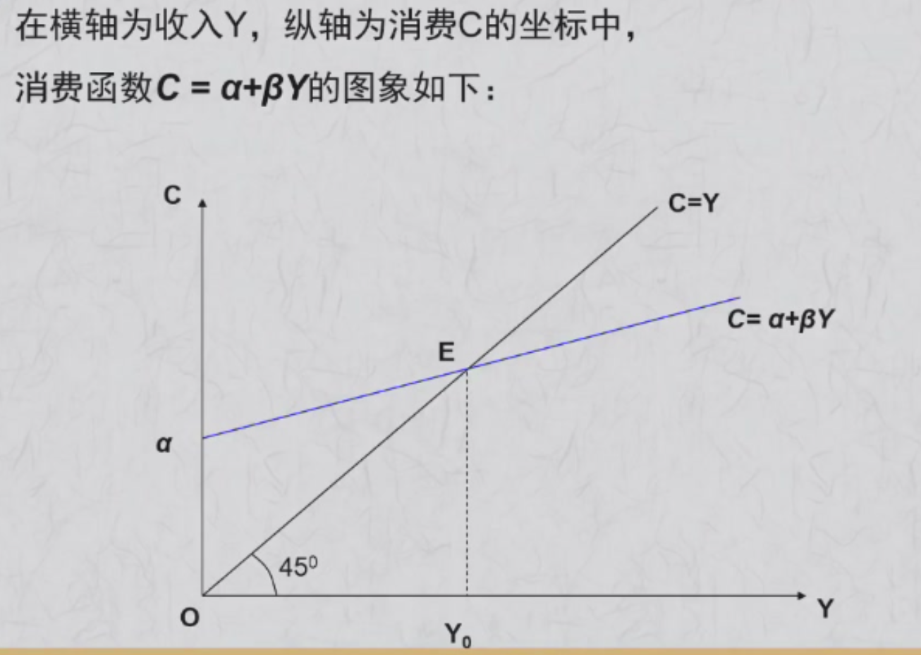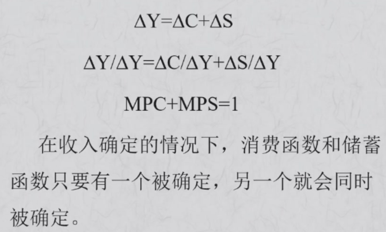- 平均消费倾向 > 边际消费倾向,随着收入增加,平均消费倾接近边际消费倾向