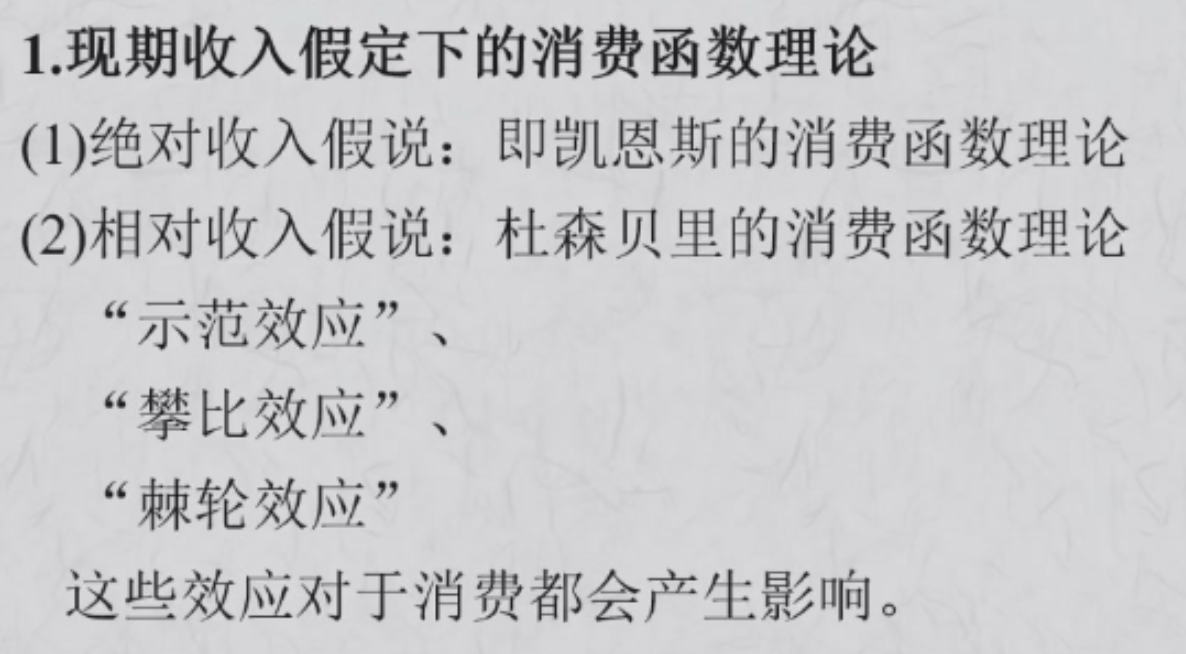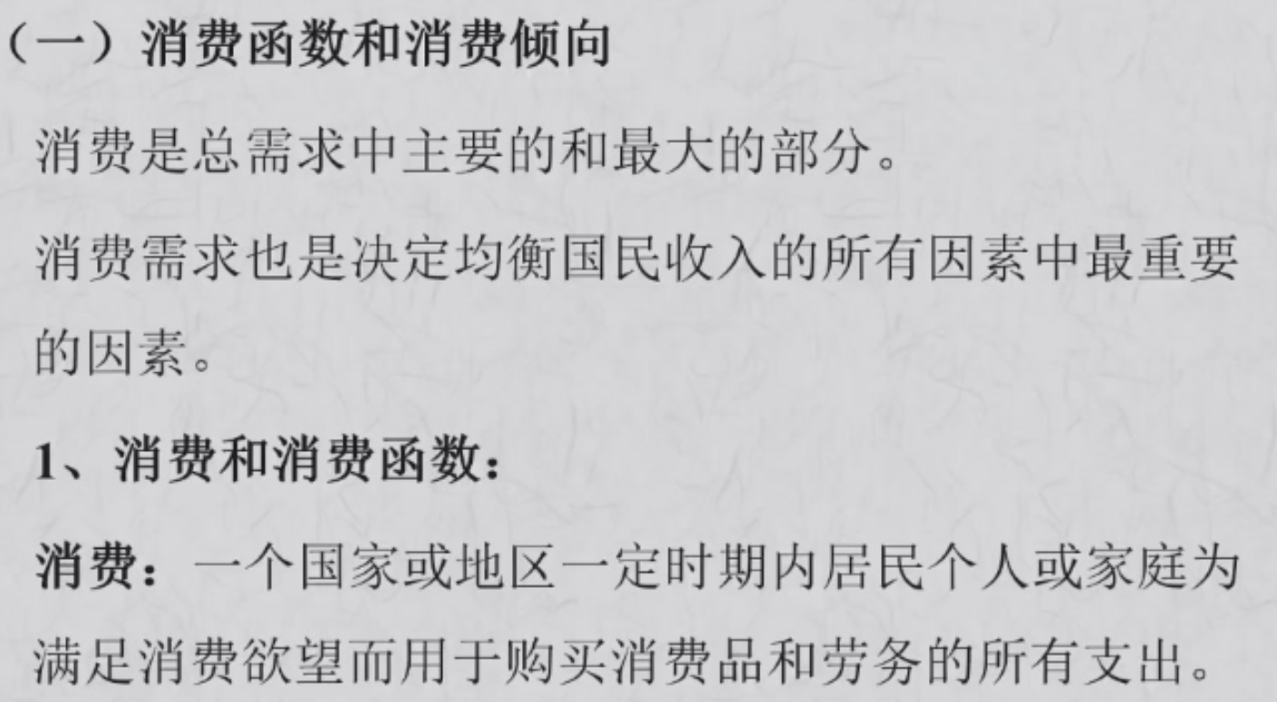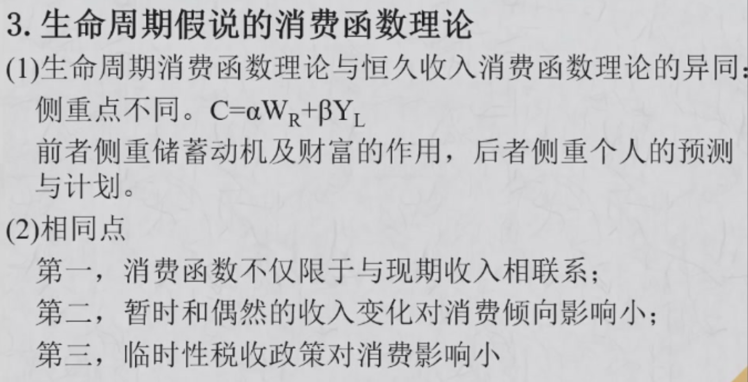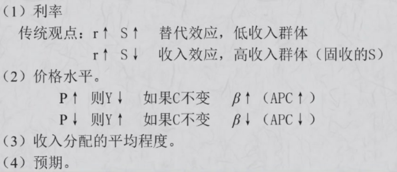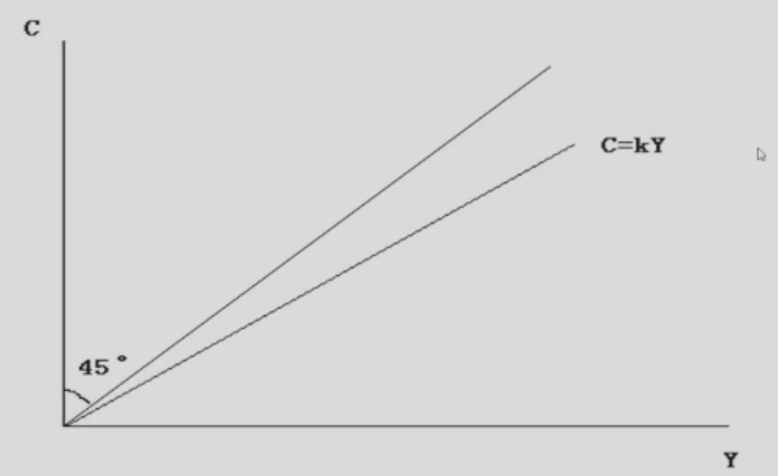 - 平均消费倾向 > 边际消费倾向,随着收入增加,平均消费倾接近边际消费倾向