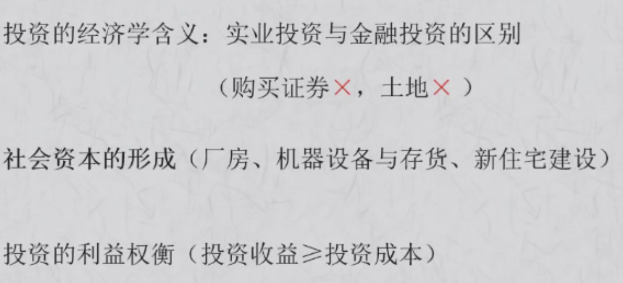 宏观经济学中,投资指的是实体经济的投资,不包括金融投资,即买股票不算