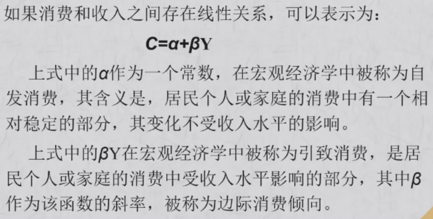 \(\alpha\) 的经济学含义:自发消费,和收入无关的引起消费变得变化的因素