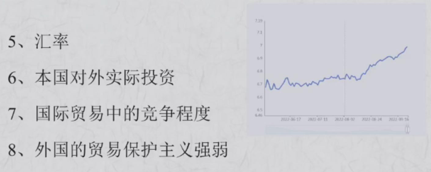 汇率很重要:本币贬值有利于出口,因为本币贬值,外国人用同样数量的外币可以买更多的本币,又因为出口时候是用本币计价,所以外国人能买更多的本国产品