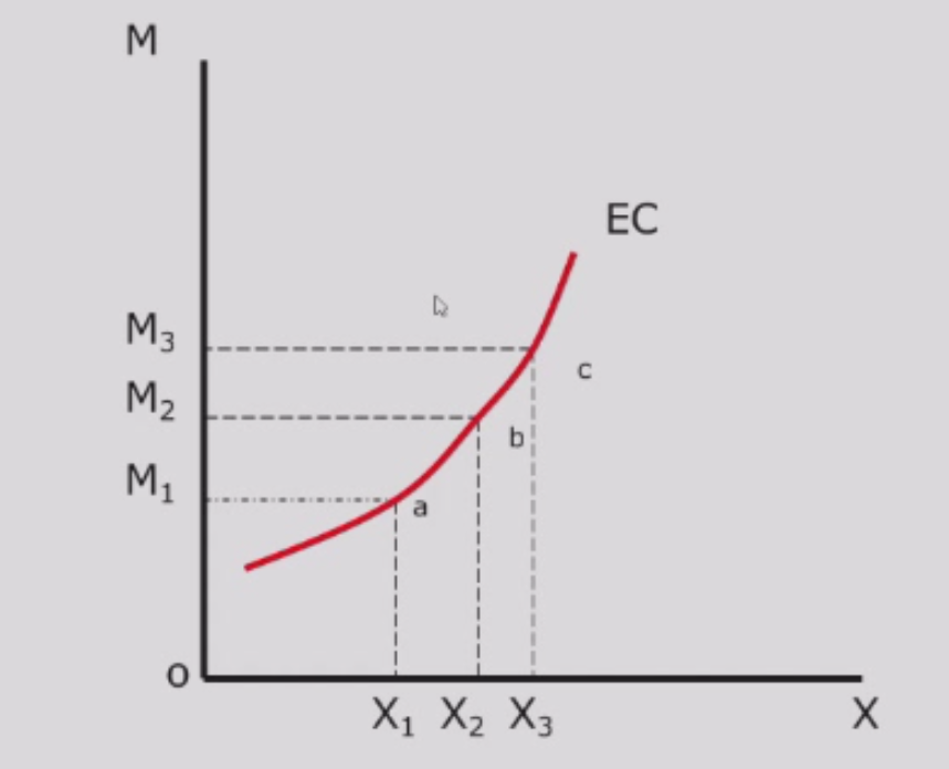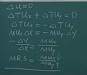 而随着 \(X\) 增加,\(MU_X\) 递减;且 \(Y\) 减少,\(MU_Y\) 递增,所以 \(MRS_{XY}\) 递减