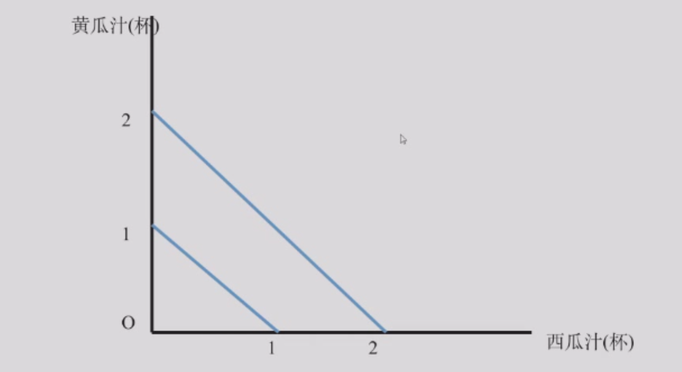当收入增加(价格不变)时,预算线平行外移,斜率不变