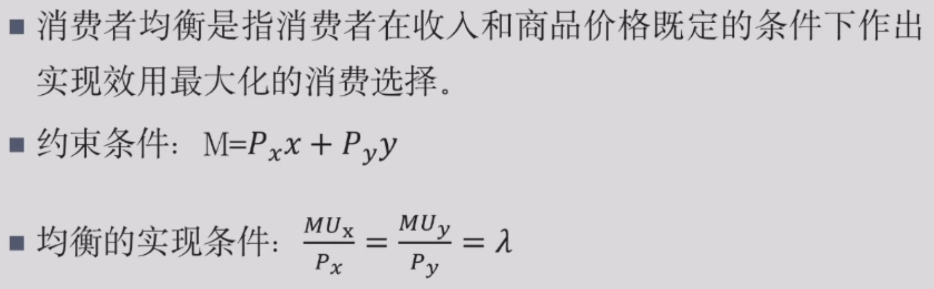 实现条件:拿钱买商品,每一块钱带来的边际效用相等