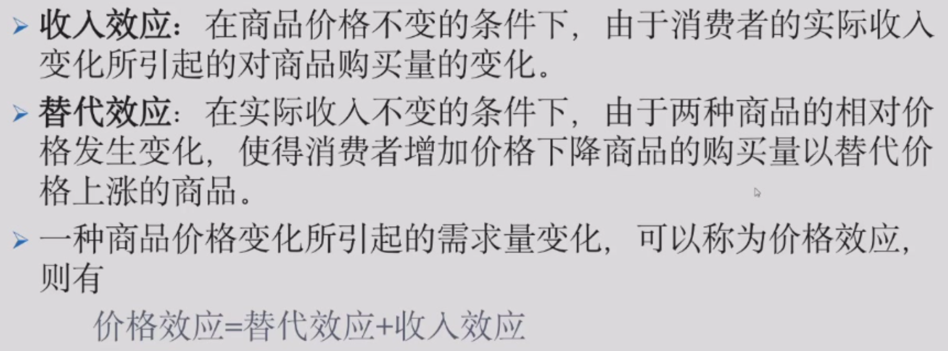 - 实际收入:实际的购买力 or 购买商品得到的效用