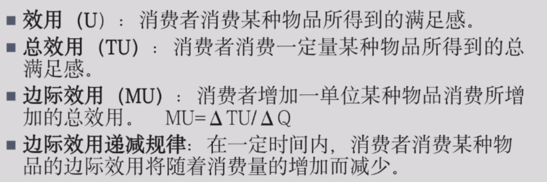 效用 Utility:从某种行为(不一定是消费每种物品)中获得的满足感,消费者主观感受