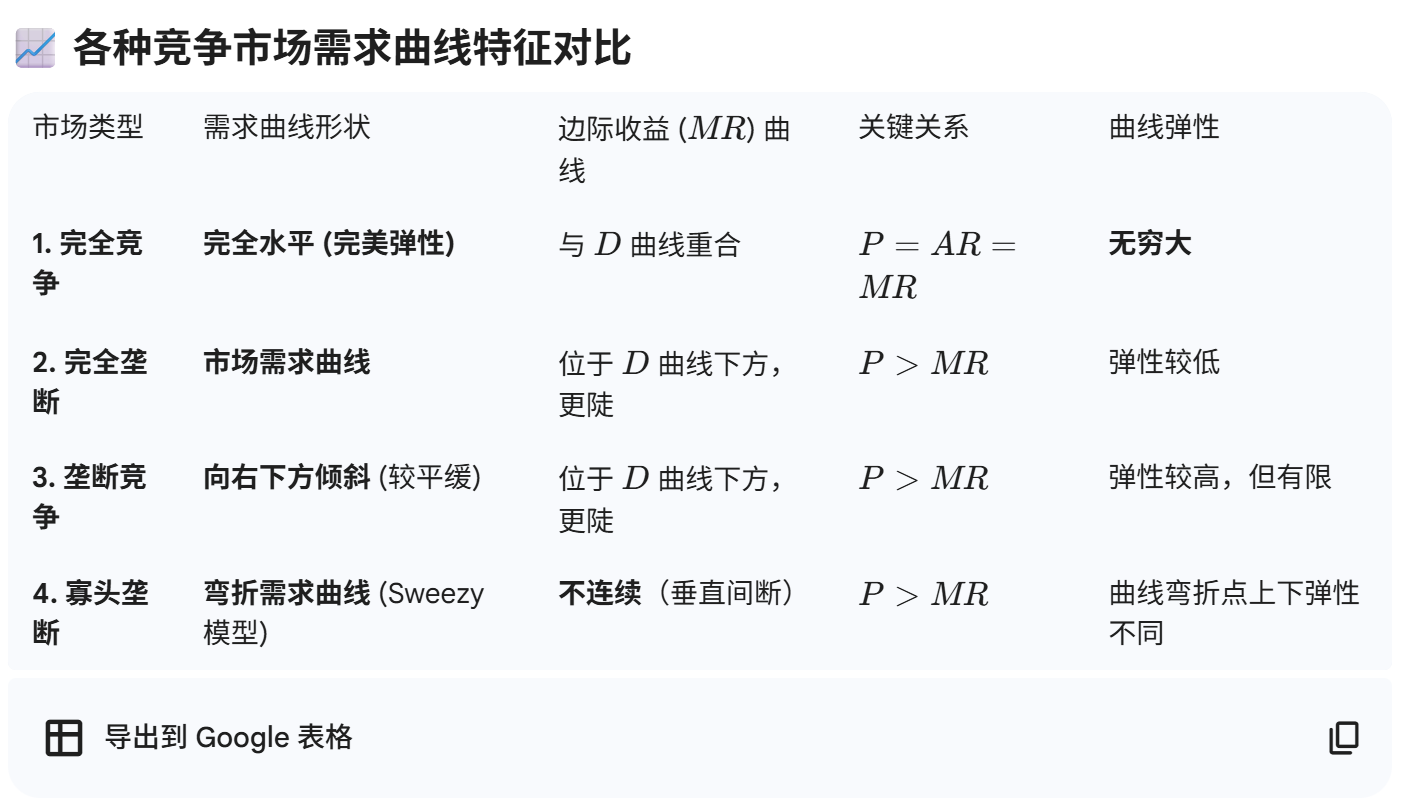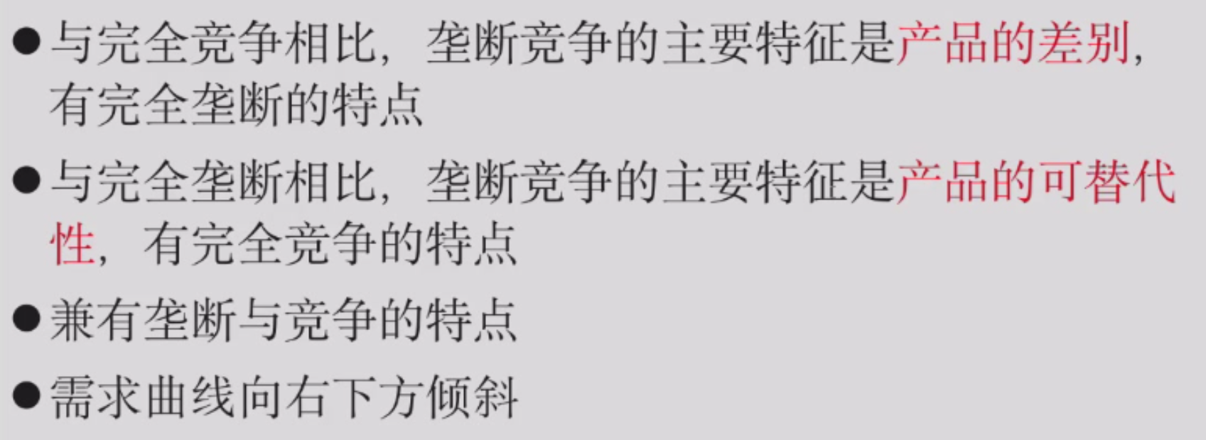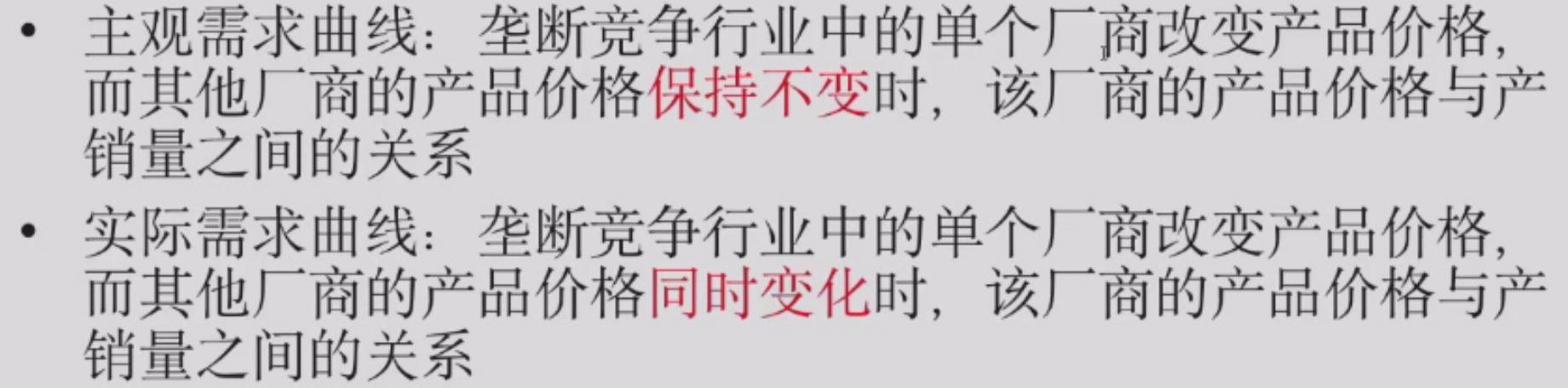 - 有替代性,则消费者价格敏感度更高,需求曲线比完全垄断市场更平坦
