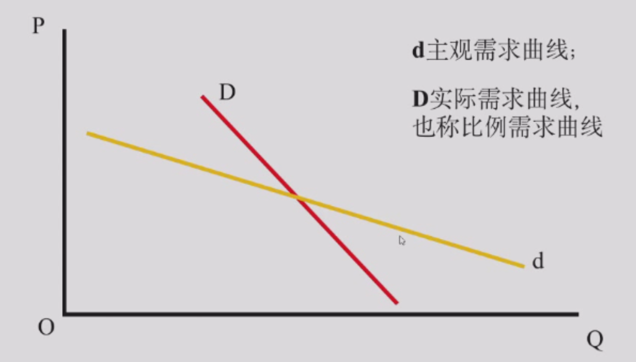 厂商的需求曲线 = 市场需求曲线,斜向下:随价格增加,需求量减少