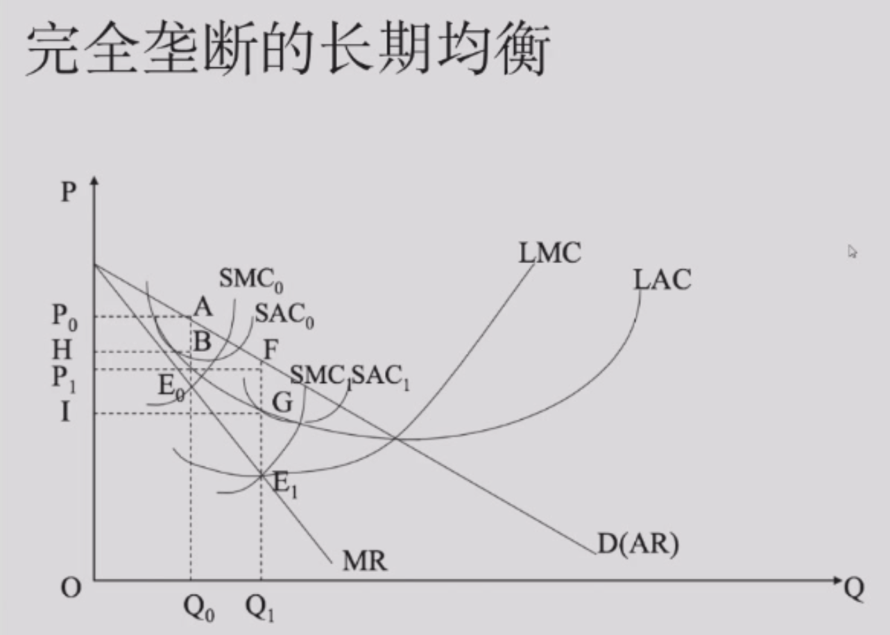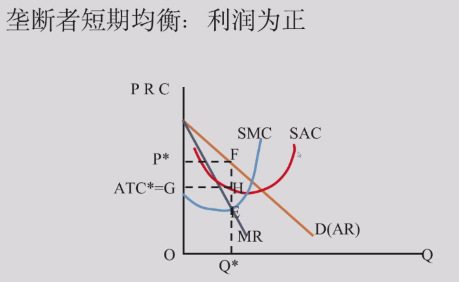 由 \(MR = MC\) 求出均衡产量 \(Q^*\),再由需求曲线(\(D(AC)\))求出均衡价格 \(P^*\),再由 \(SAC\) 曲线找到 \(Q^*\) 对应的单位成本 \(SAC^*\),利润为 \((P^* - SAC^*) * Q^*\)。