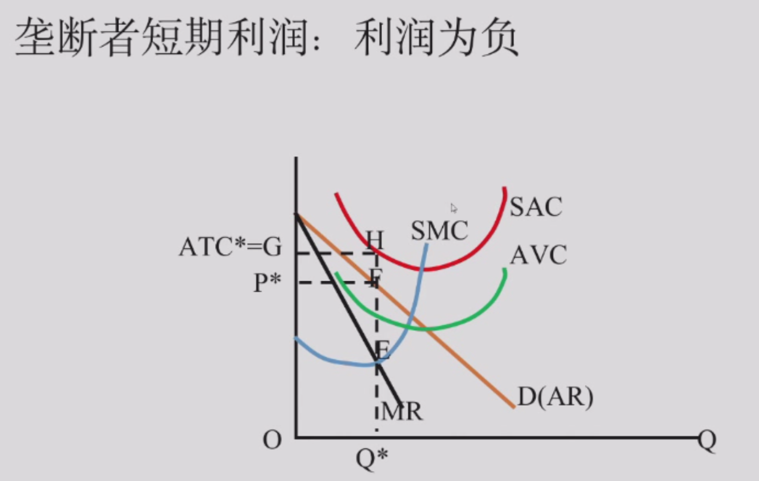 长期均衡中垄断不可能有负利润。但是可能有正利润(因为其他企业进入受限)。