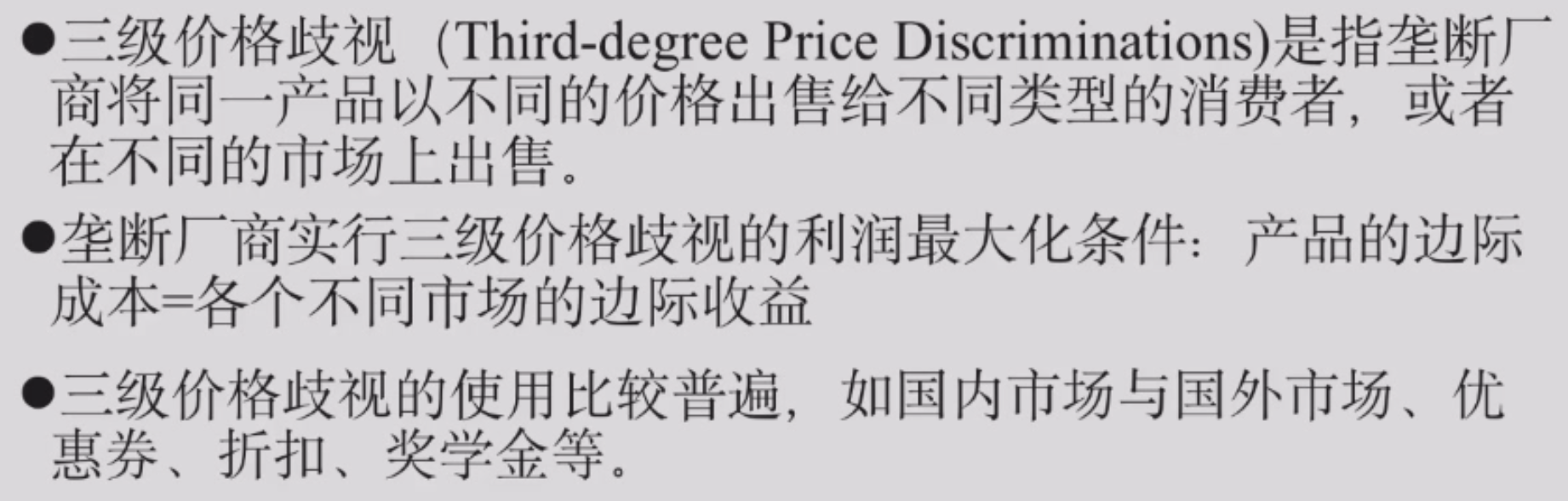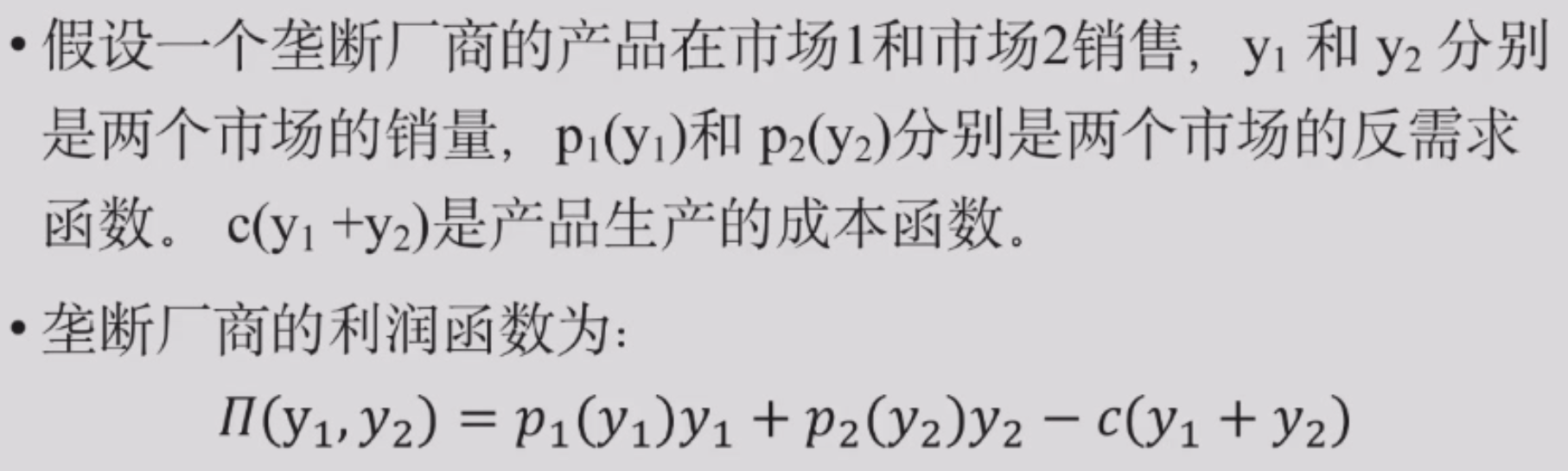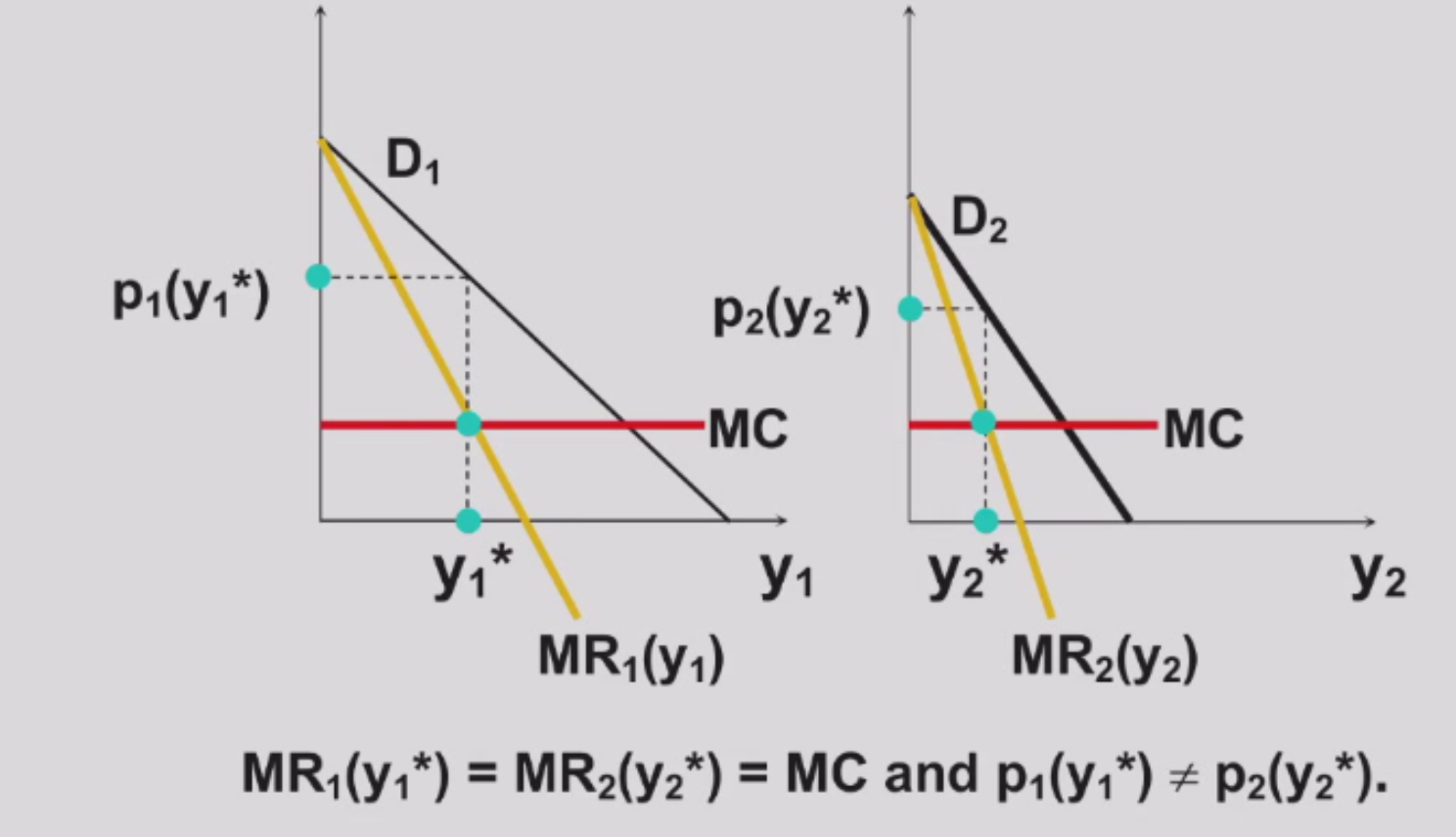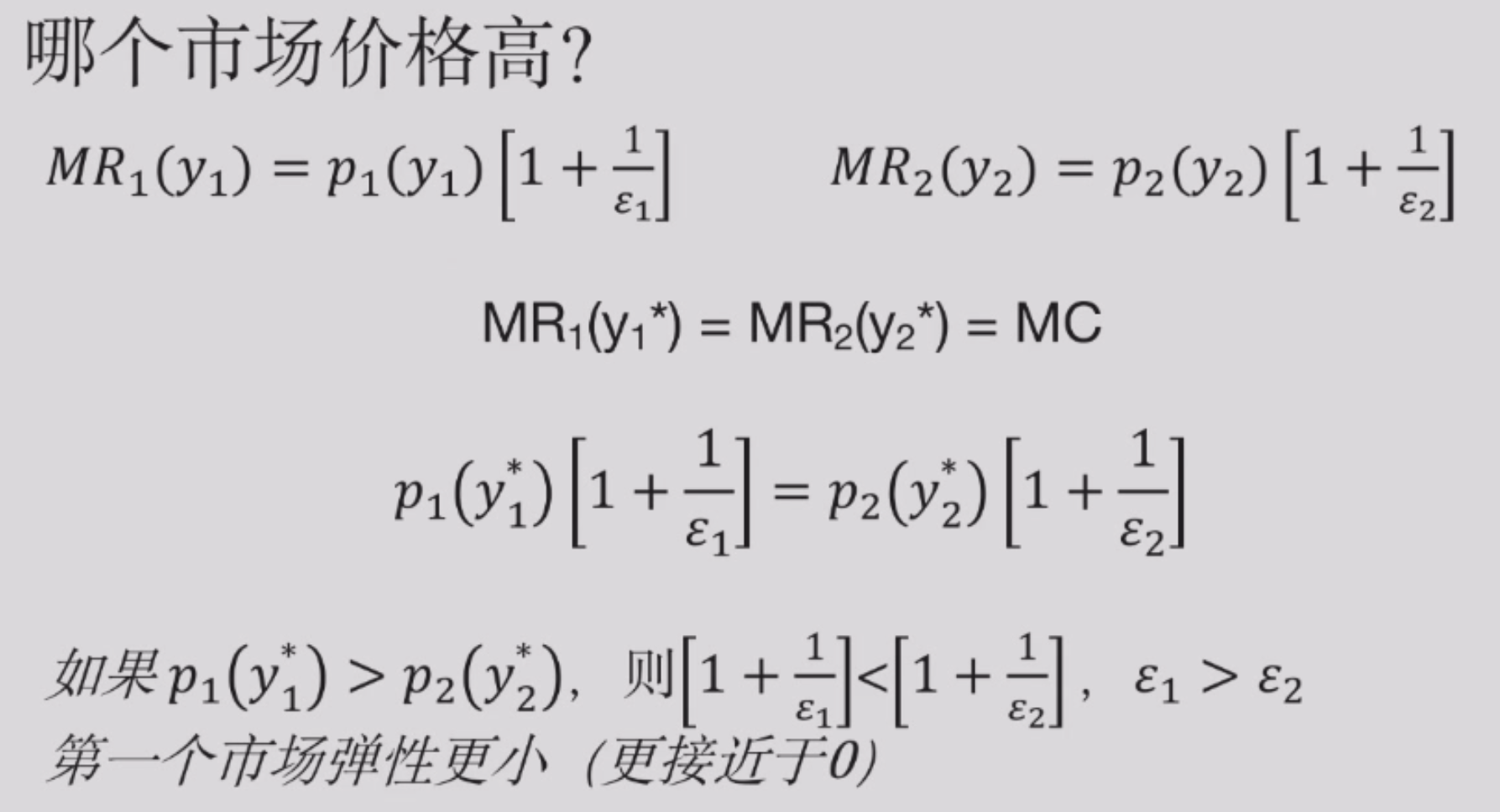 将消费者分成 \(n\) 个市场,利润最大化条件:\(MR_1 = MR_2 = ... = MR_n = MC\)