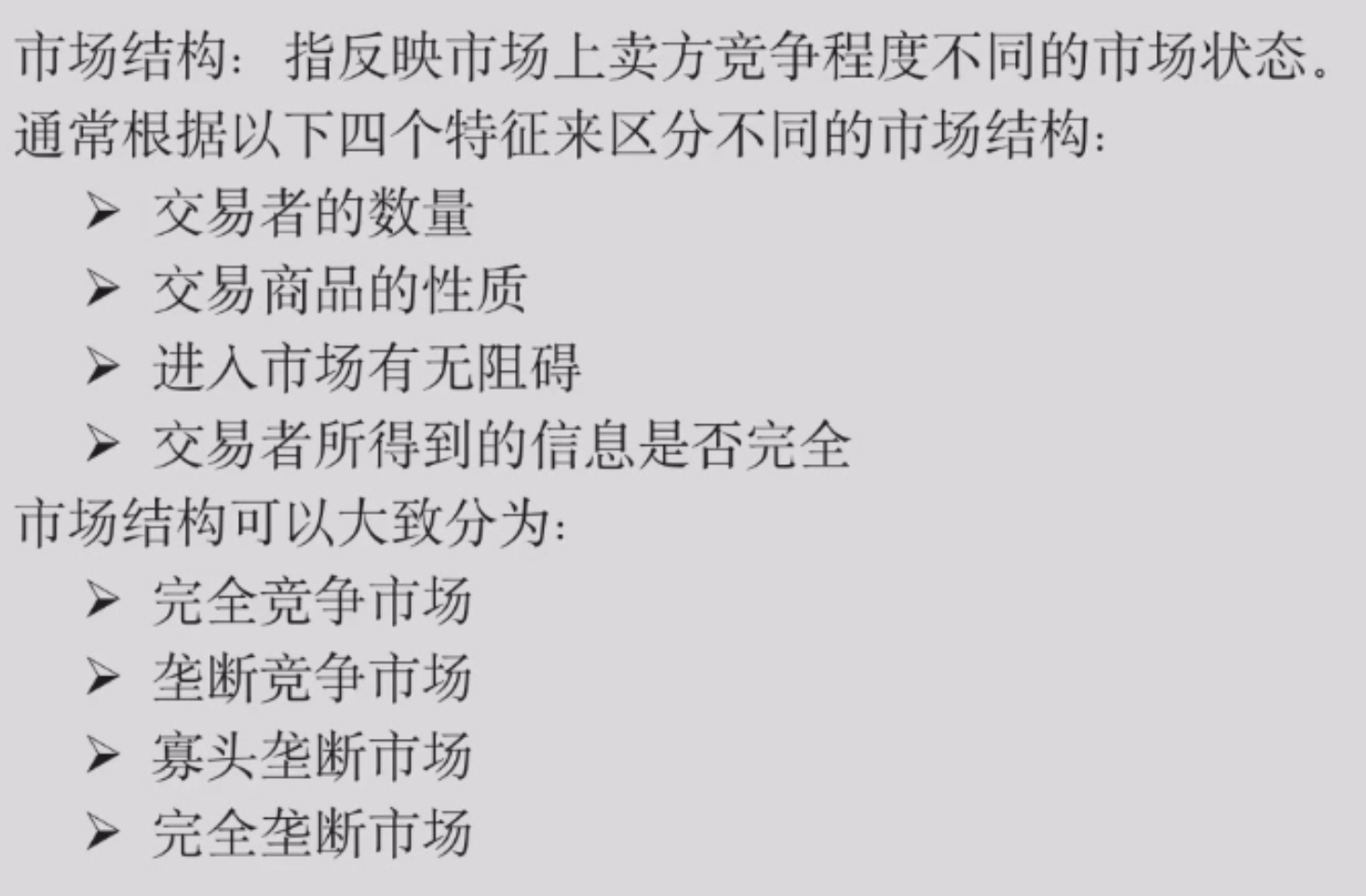 完全竞争 $\to \cdots \to $ 完全垄断,竞争程度逐渐降低