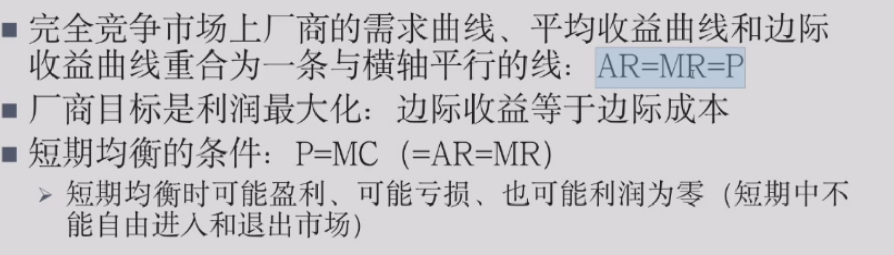 - 份额过小不足以影响市场价格,所以价格和产(一个买家的)无关,买卖双方都是价格接受者