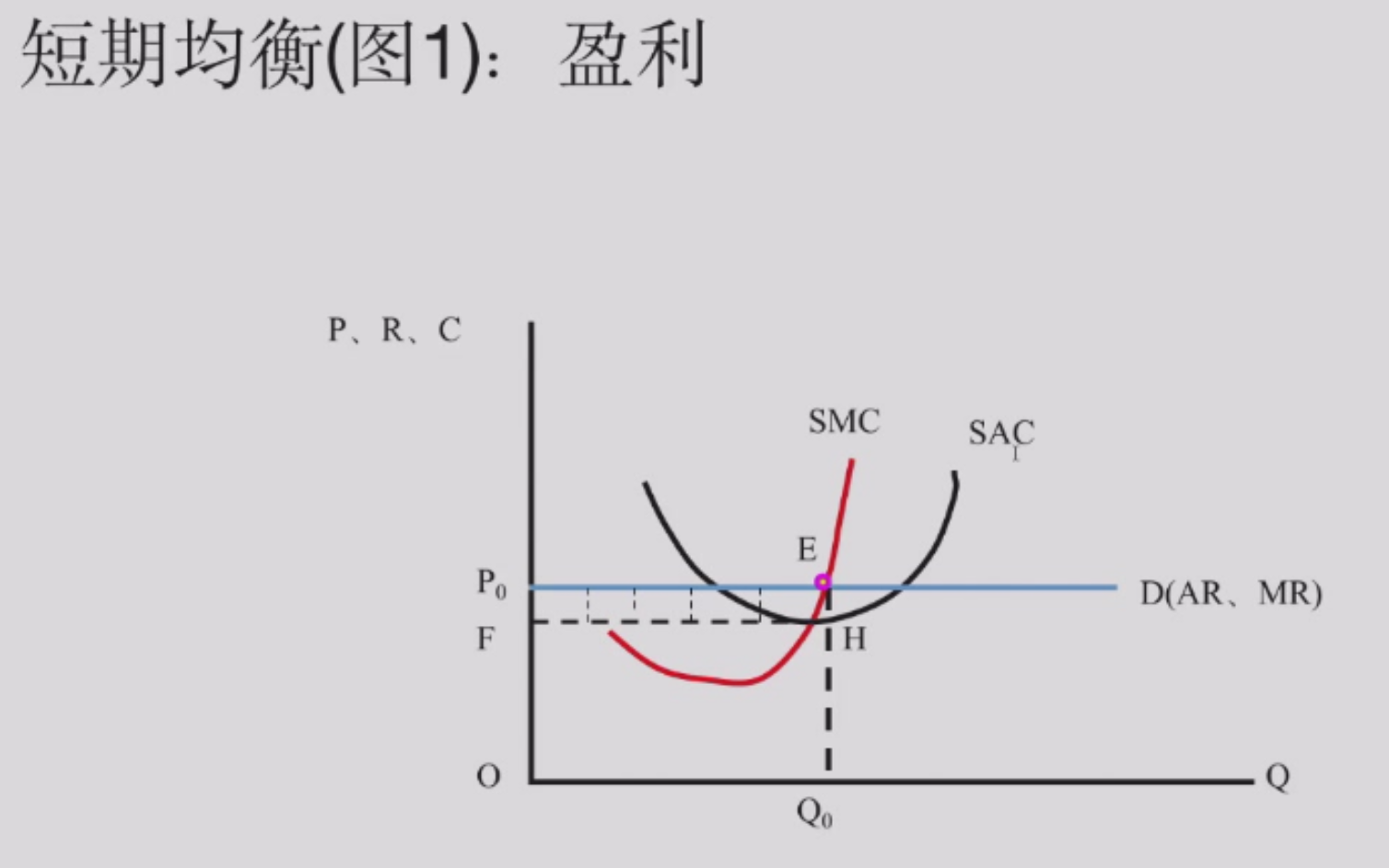 \(\pi = TR - TC = P*Q - AC * Q = (P - AC) * Q\),也就是图上长方形 \(P_0EHF\) 的面积