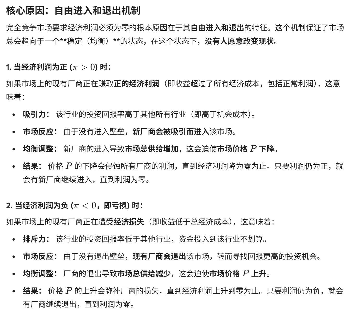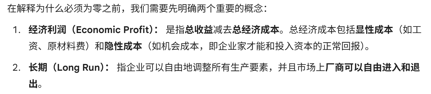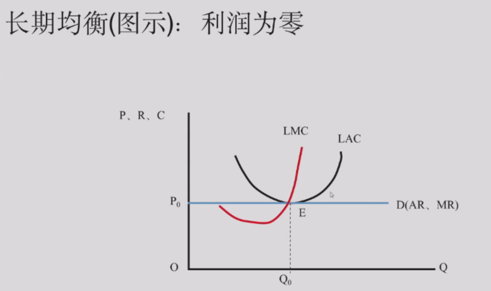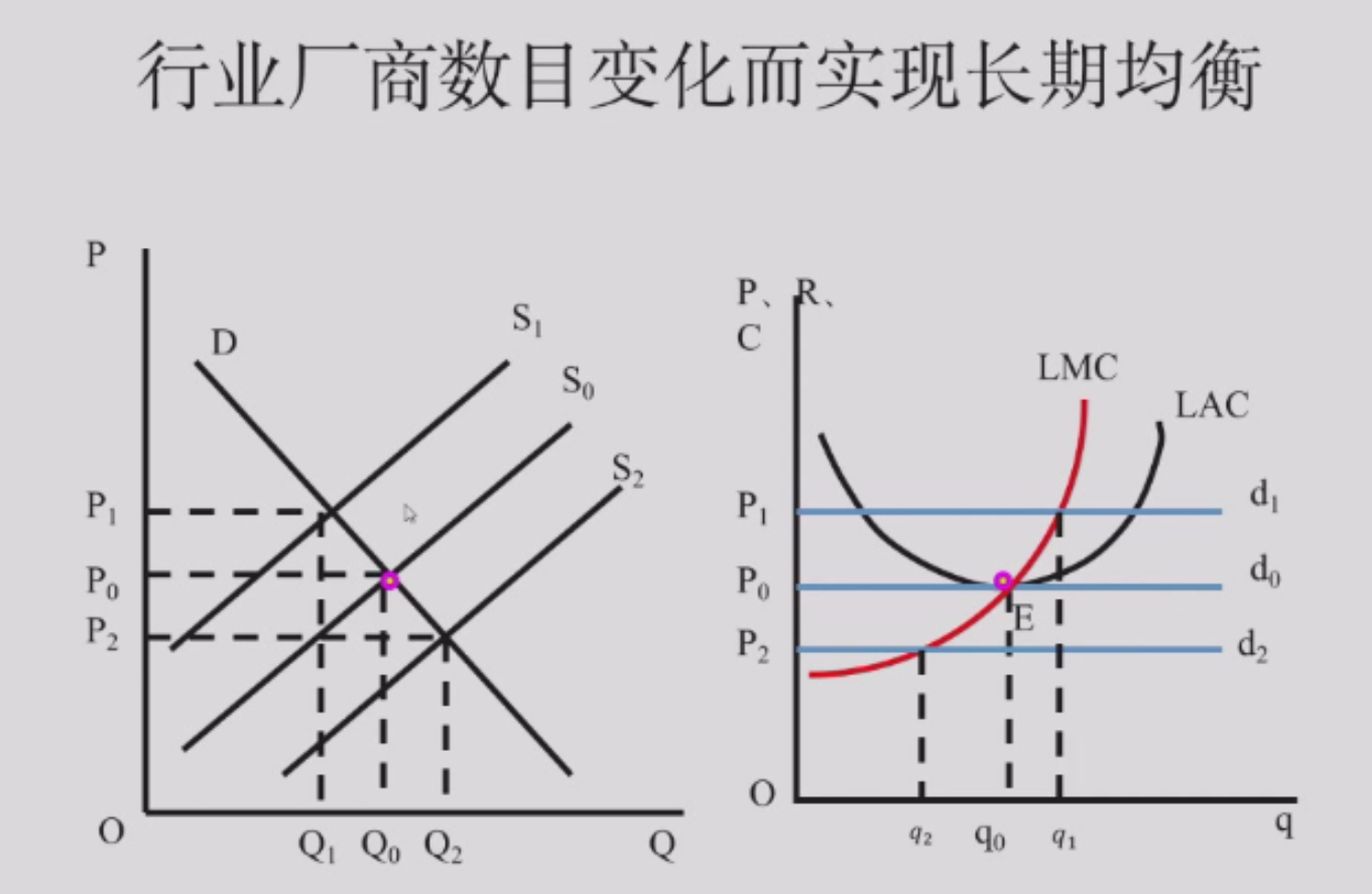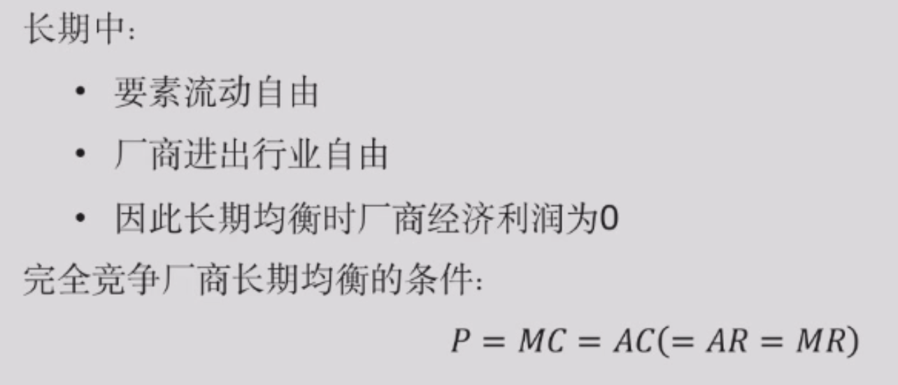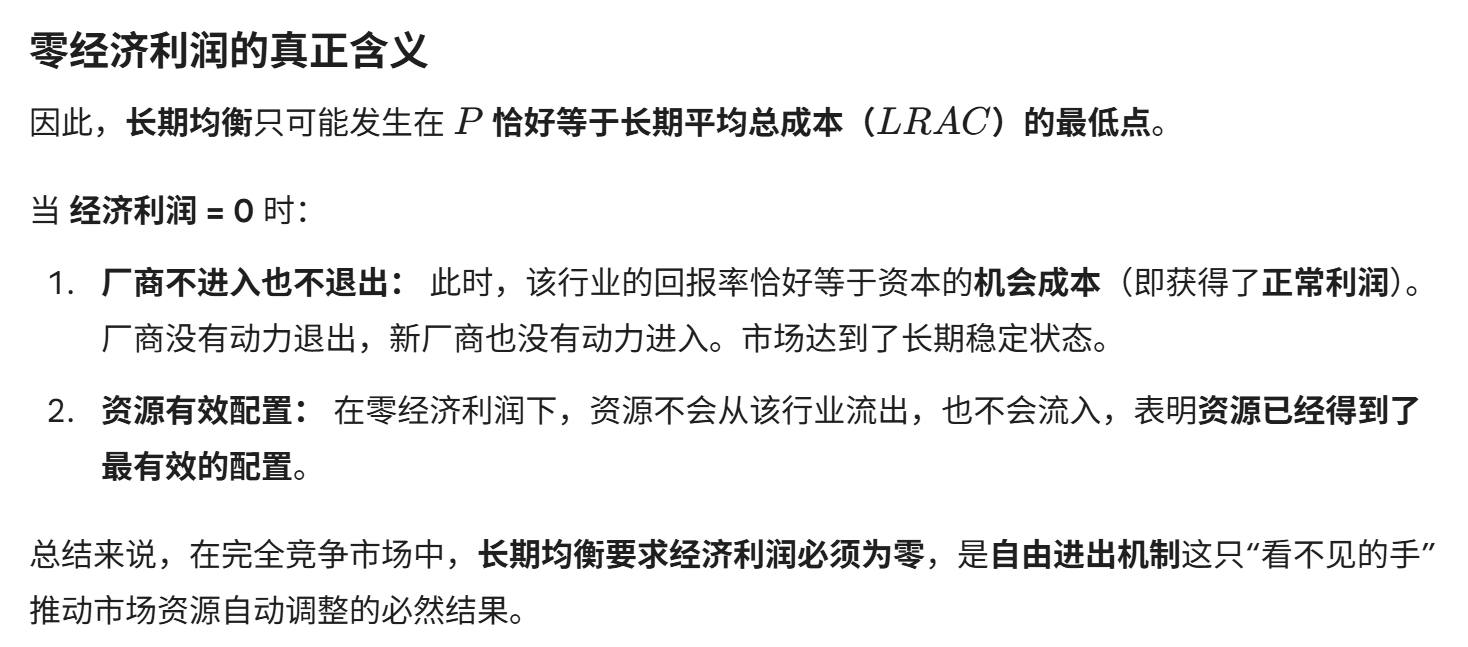 长期均衡:厂商不可能亏损,也不会有正利润,经济利润一定是零