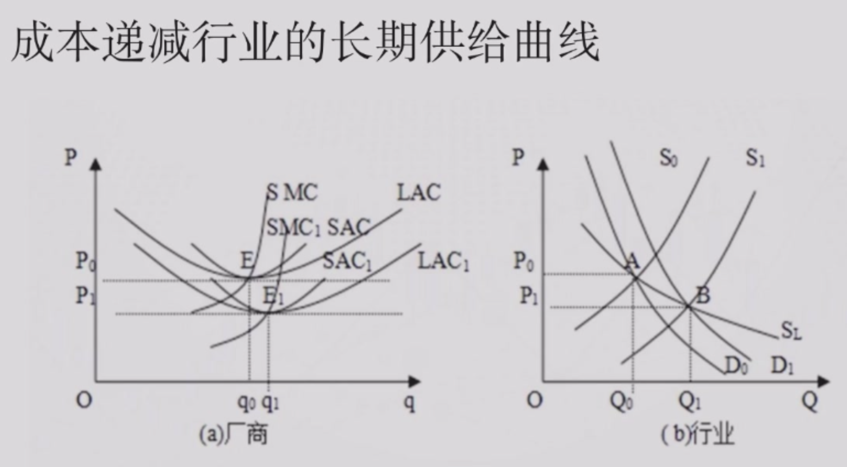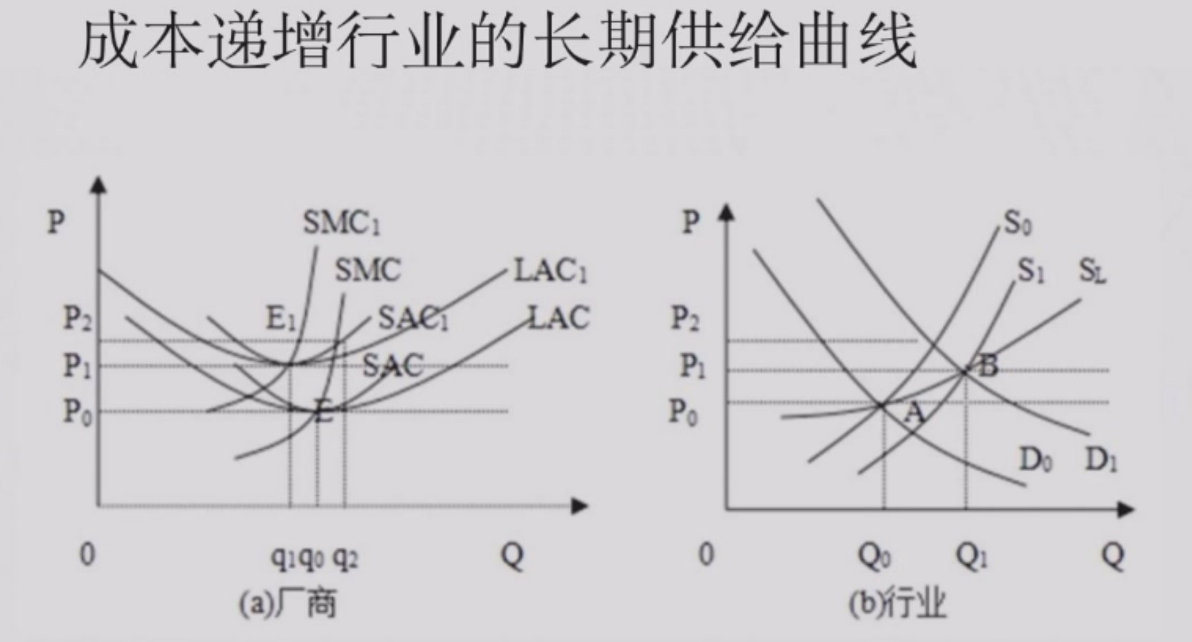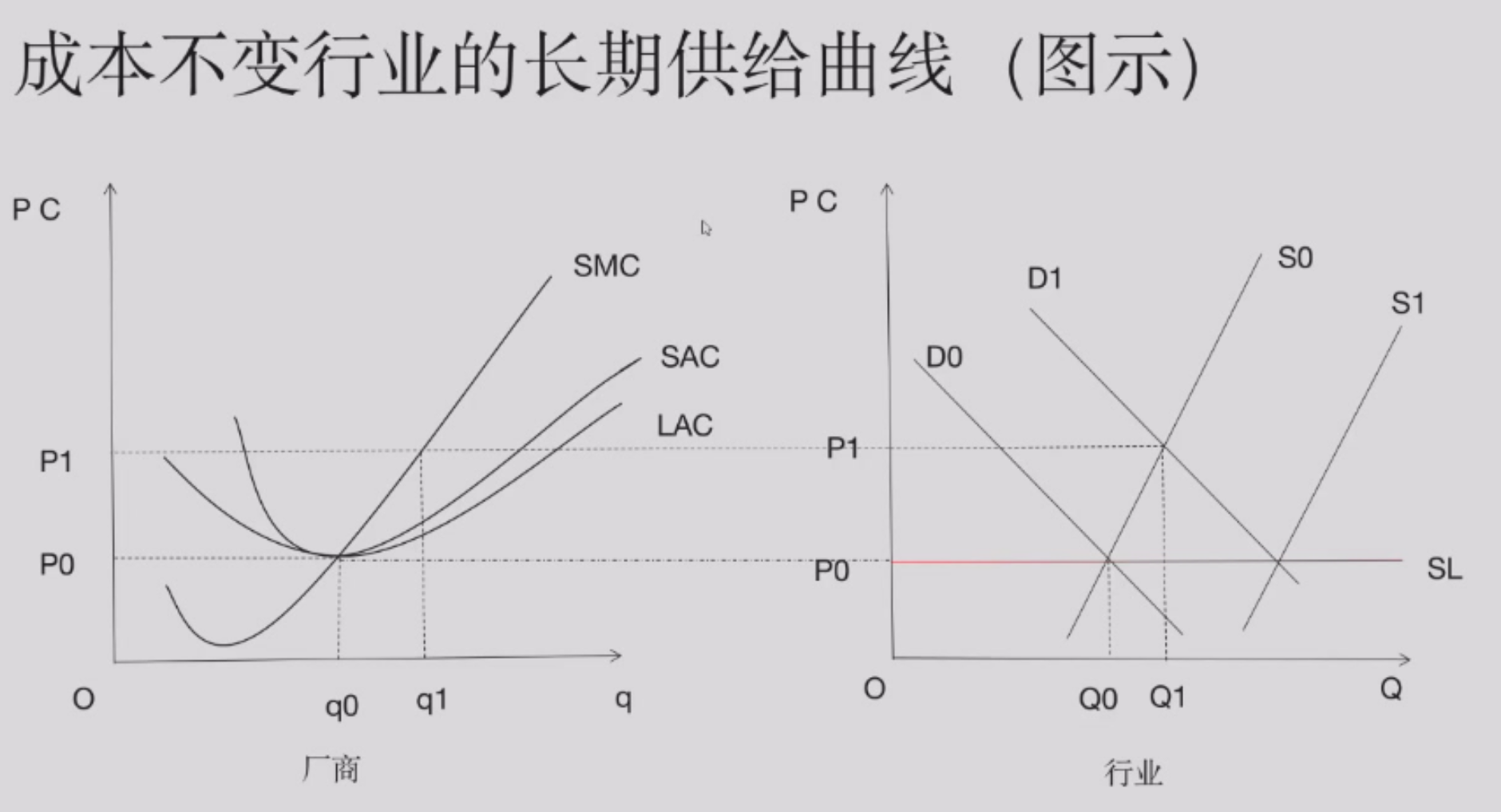 零利润一定是在 SAC 的最低点,因为 \(P = MC\) && \(P = AC\), 所以 \(MC = AC\),只有在 AC 最低点才相等