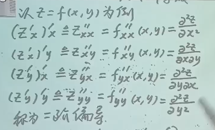 \(\frac{\partial^2 f}{\partial x \partial y}\) 先对谁偏导分母上谁就写前面,这个代表先对x偏