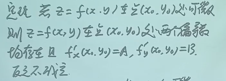 可微则偏导均存在,反之不成立. 逆否: 至少有一个偏导数不存在, 则不可微