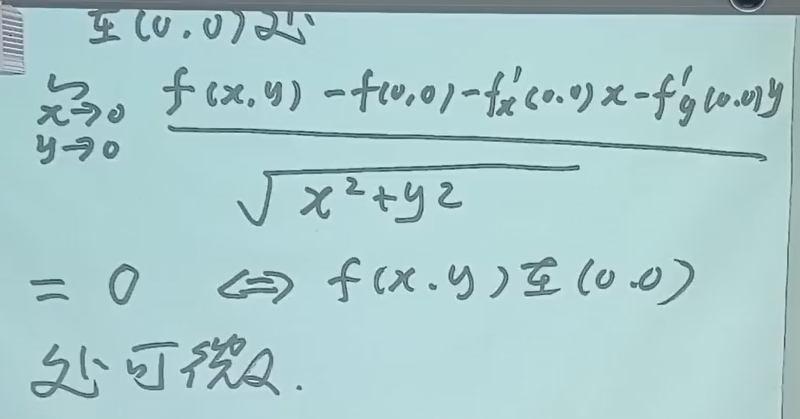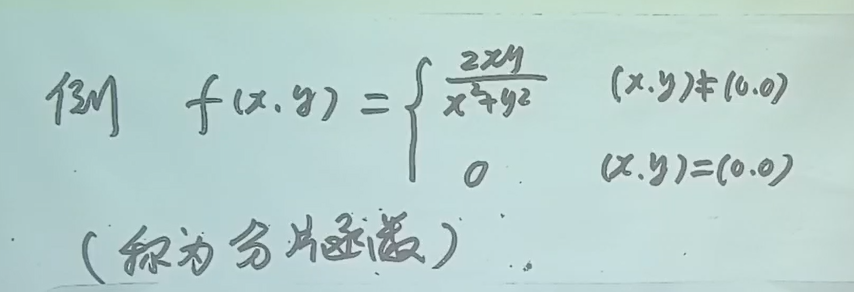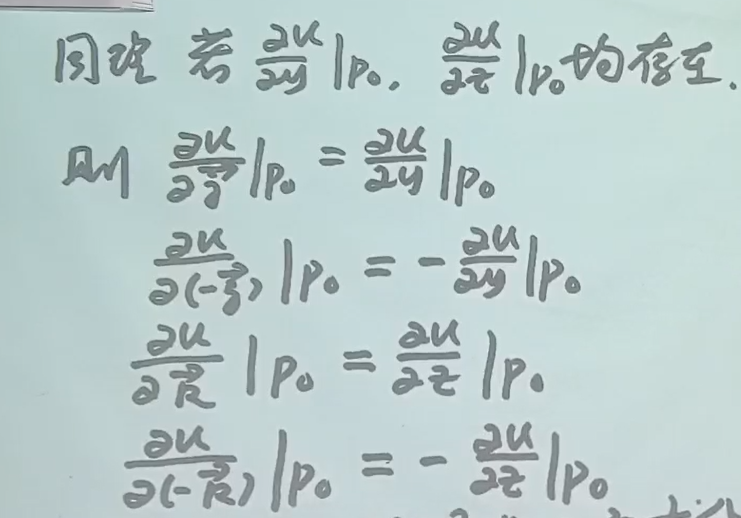 - 用偏导数定义:适用于在孤立点(那个点单独定义了函数值)上的偏导数,类似于一元函数区间分界点处导函数。孤立点只能用定义。